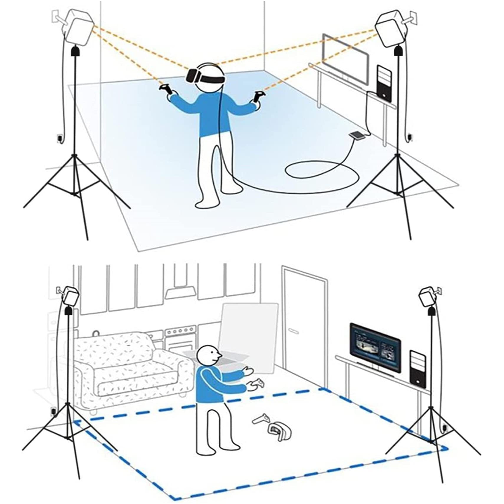 Oficjalna kwadratowa wysokość: Oficjalna kwadratowa wysokość stacji bazowej wynosi 200 cm. Statyw ten (maks. Wysokość: 203 cm) jest idealny do gier VR lub VIVE