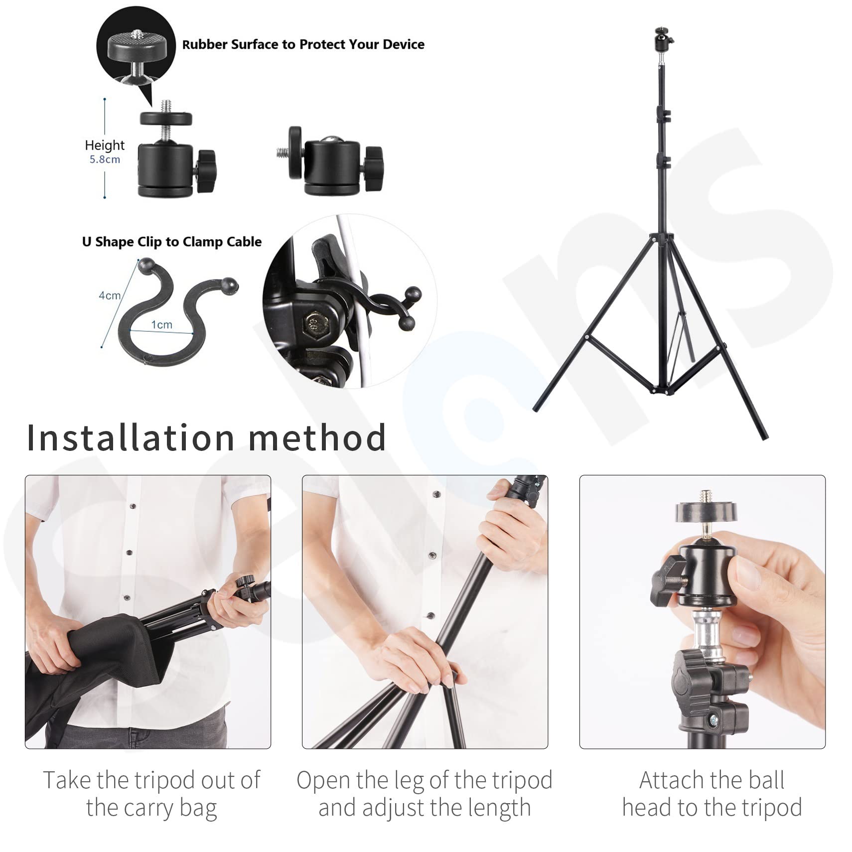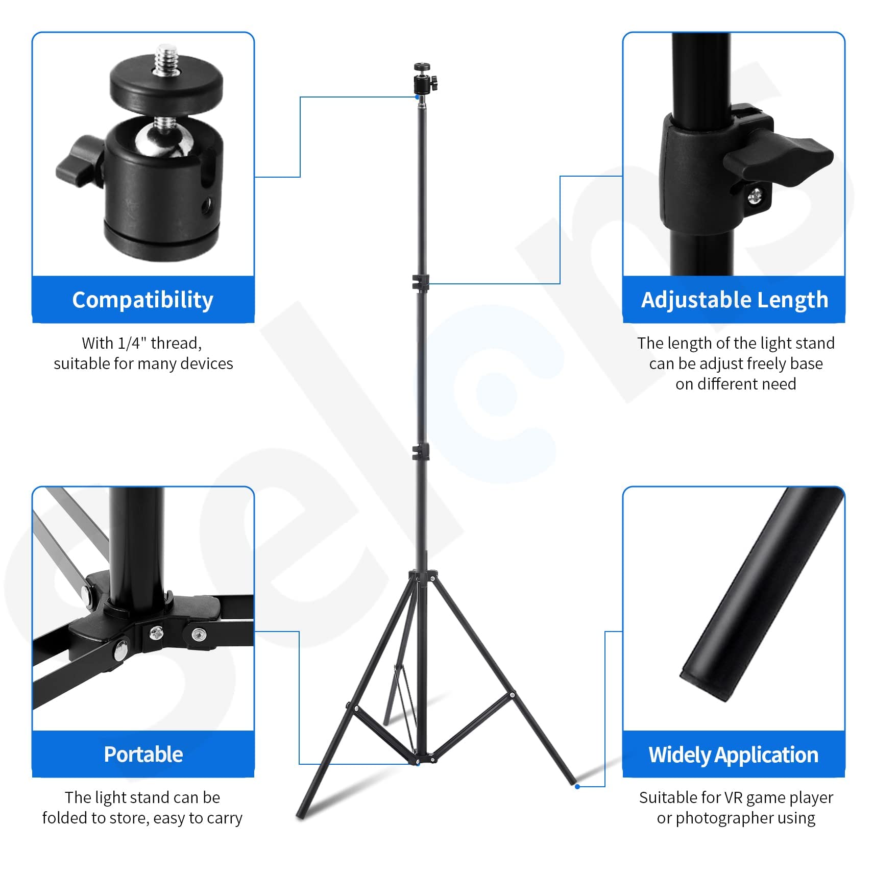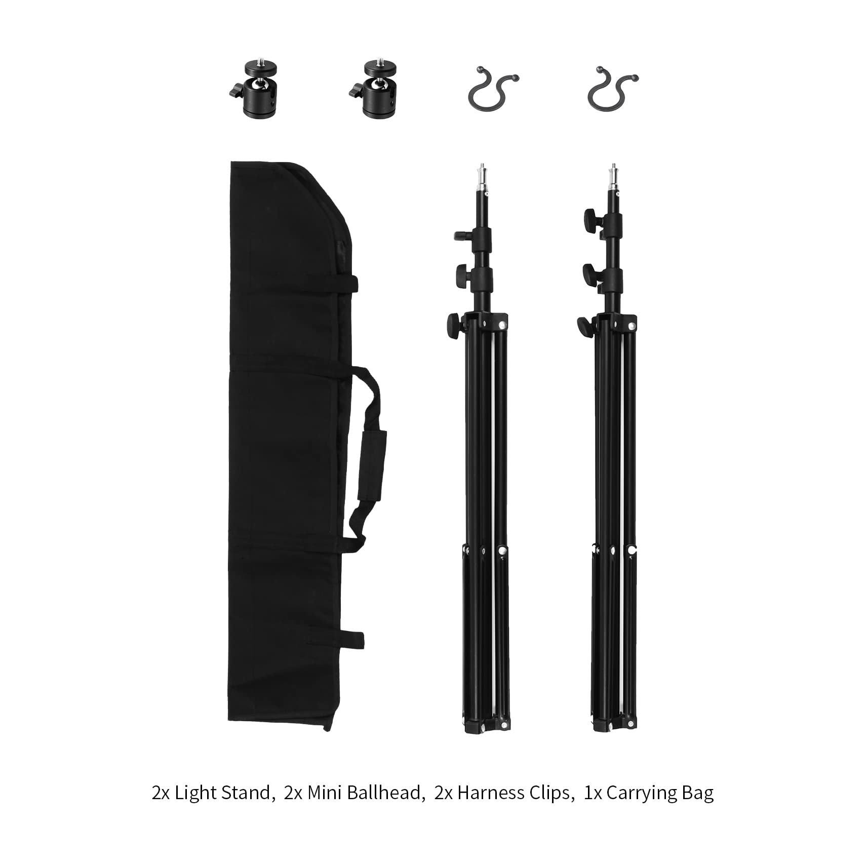 Selens Stojak VR 2 szt. 200 cm regulowany statyw oświetleniowy + mocowanie głowicy kulowej 1/10.2 cm + zestaw klipsów do wiązki przewodów, statyw ze s