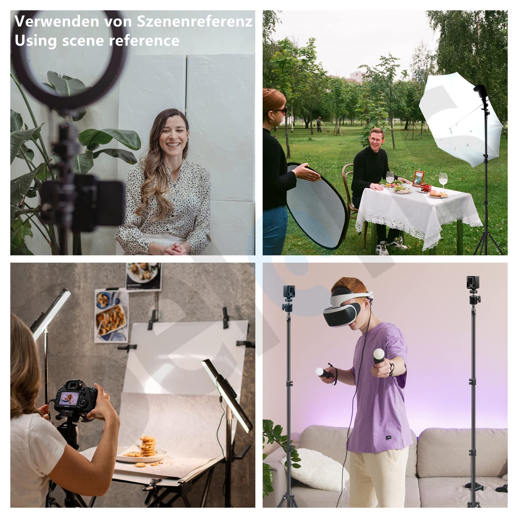 Selens Stojak VR 2 szt. 200 cm regulowany statyw oświetleniowy + mocowanie głowicy kulowej 1/10.2 cm + zestaw klipsów do wiązki przewodów, statyw ze stopu aluminium do HTC Vive, VR, gier, wideo