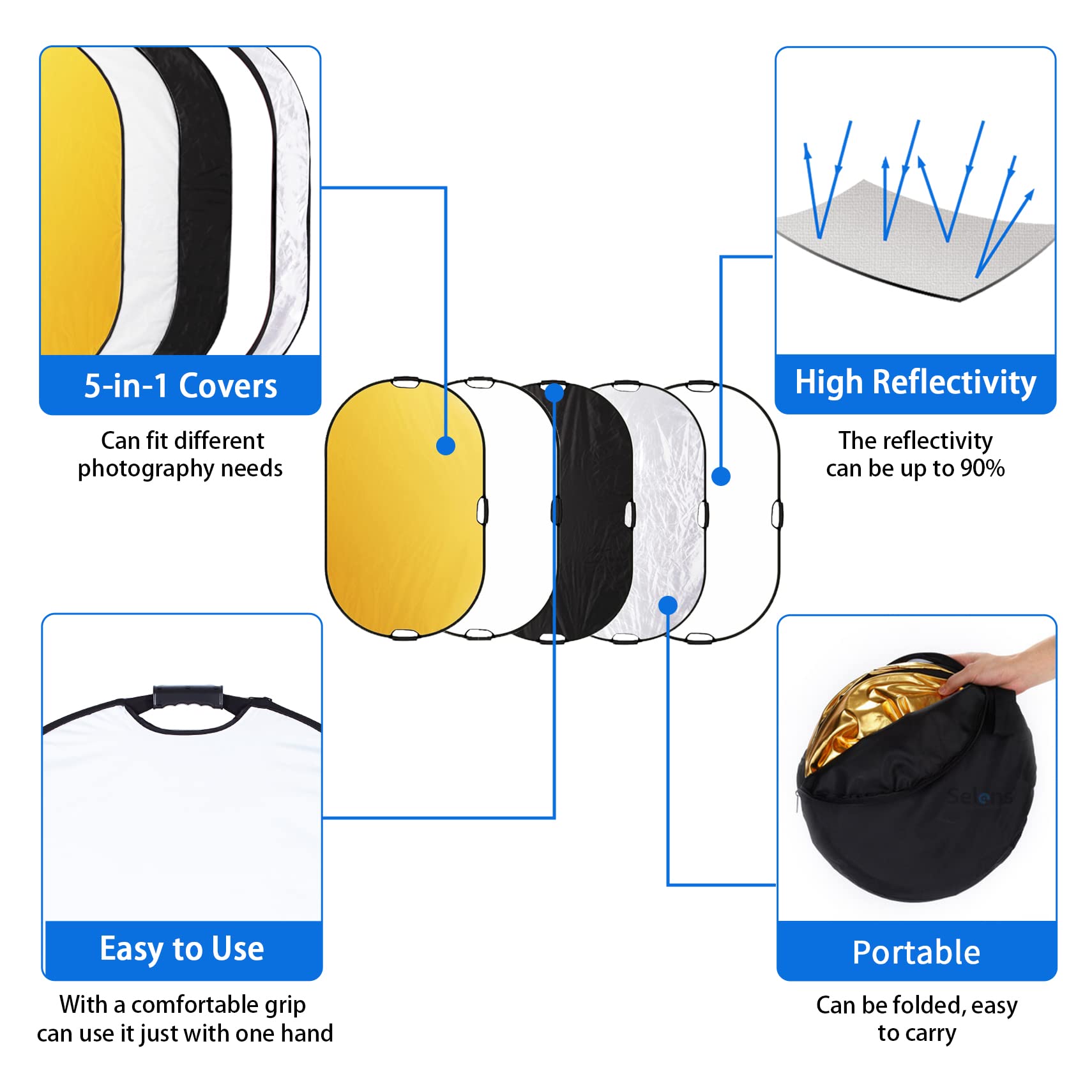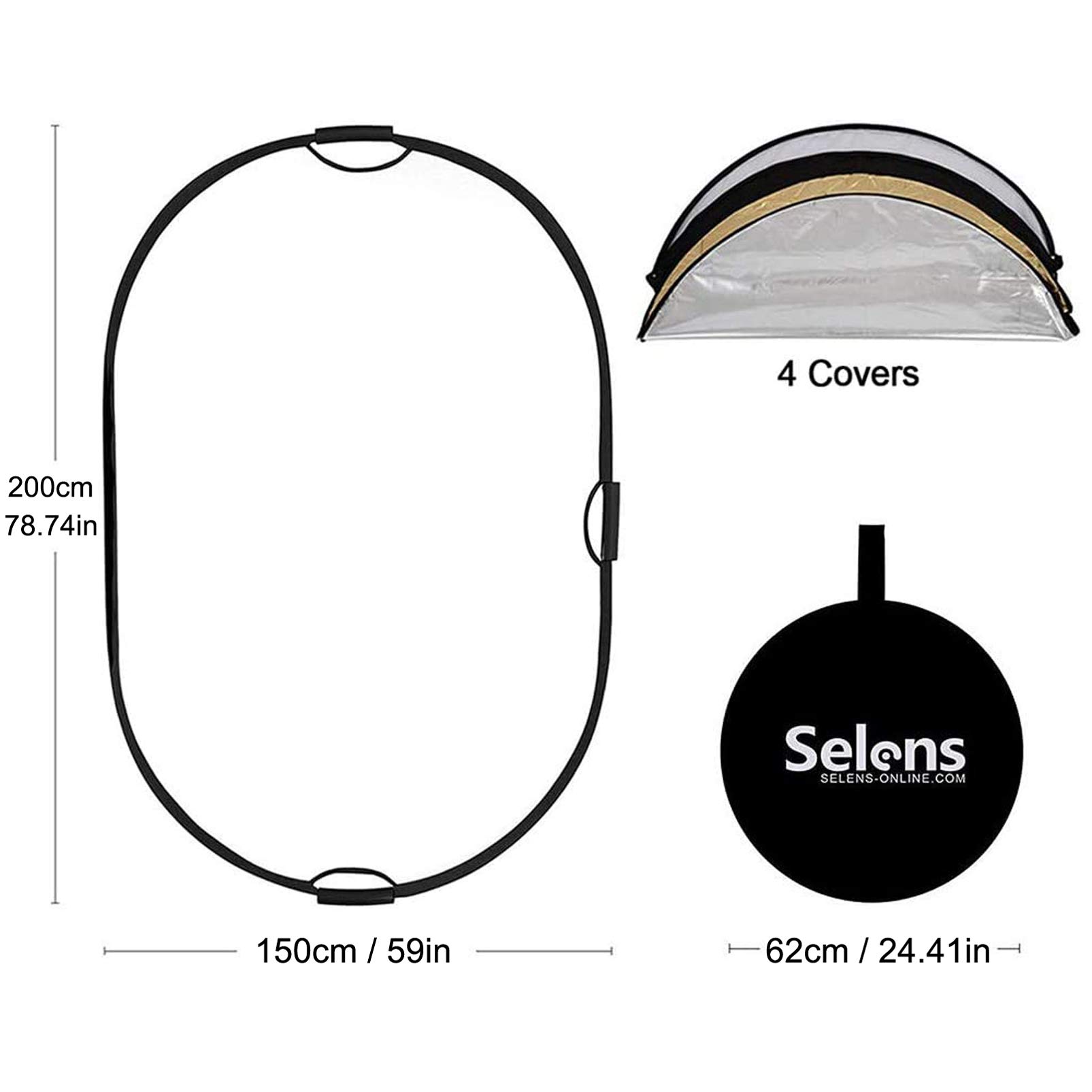 Selens 5 w 1 owalny reflektor 60 x 90 cm, przenośny, składany, do fotografii, studia fotograficznego, oświetlenia i oświetlenia zewnętrznego
