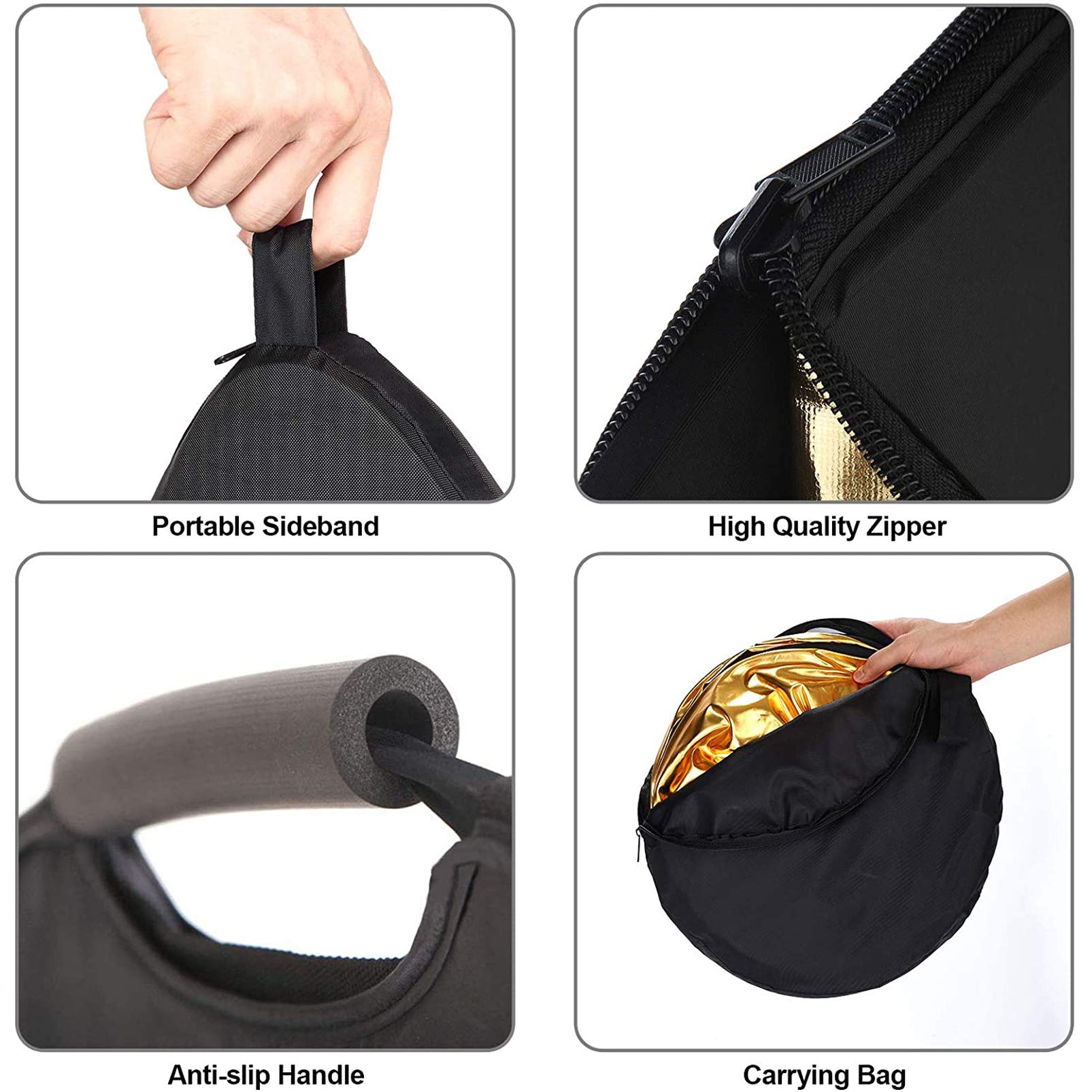 ✅ Wygodna obsługa –: Wygodna obsługa – lekki i kompaktowy składany reflektor fotograficzny ze stabilną ramą stalową, który można łatwo złożyć do niewielkich rozmiarów i schować w dołączonej torbie transportowej. Idealnie nadaje się do użytku w studiu i na świeżym powietrzu, idealnie nadaje się do fotografii portretowej.