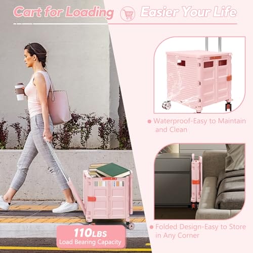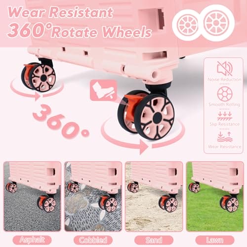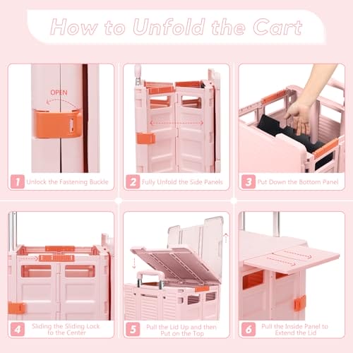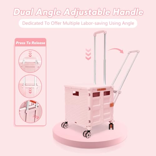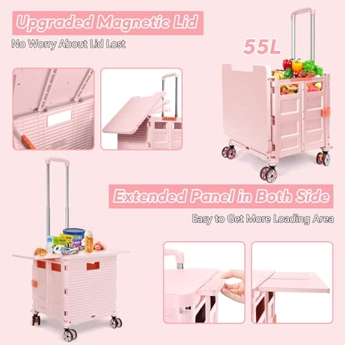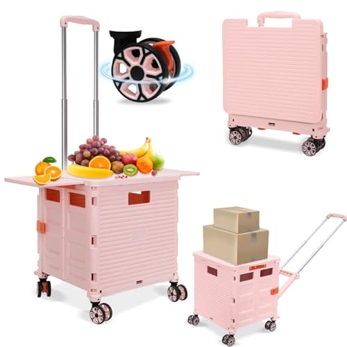 • SELORSS Składany wózek na zakupy, wózek ręczny, różowy