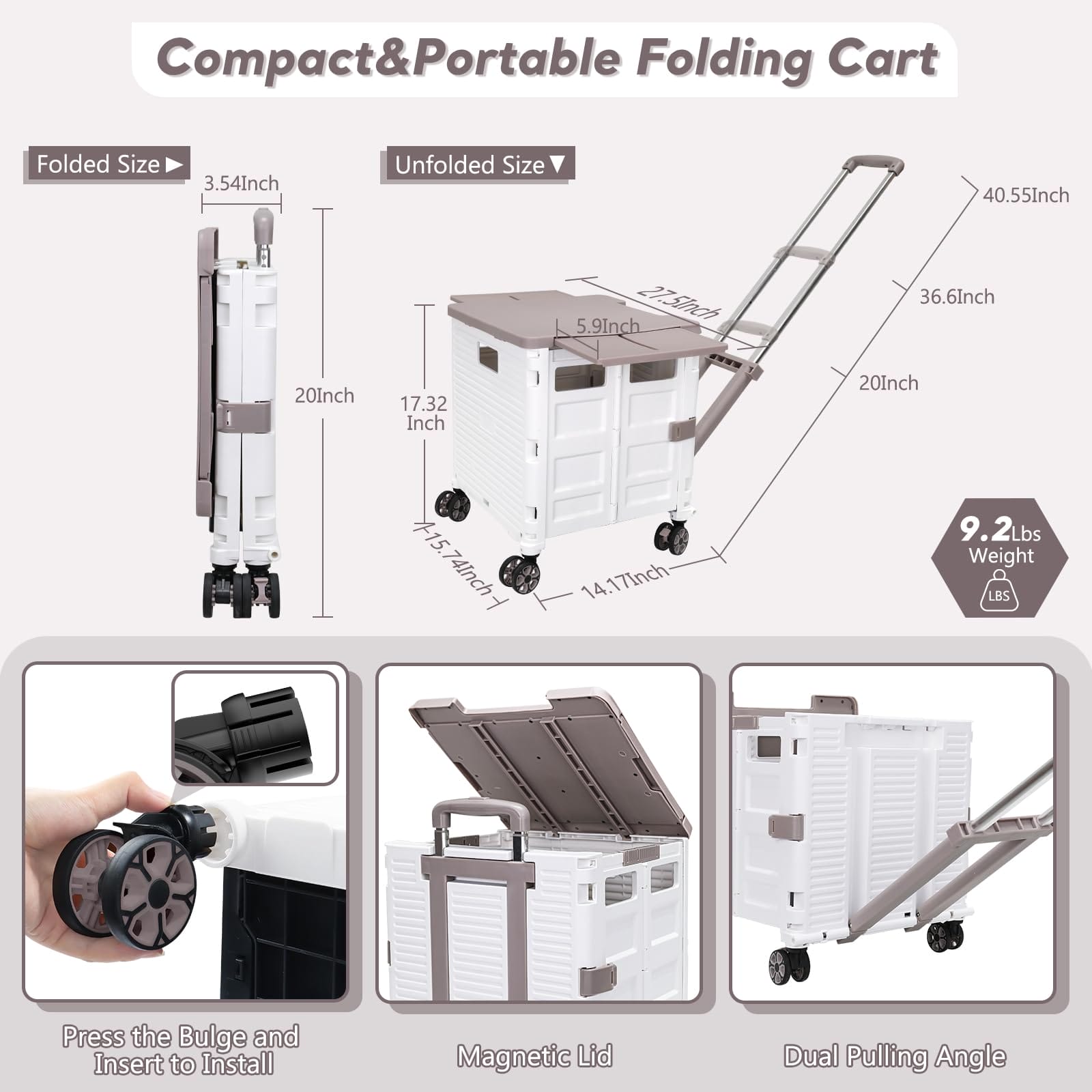 • SELORSS Składany wózek na zakupy, wózek ręczny, biały