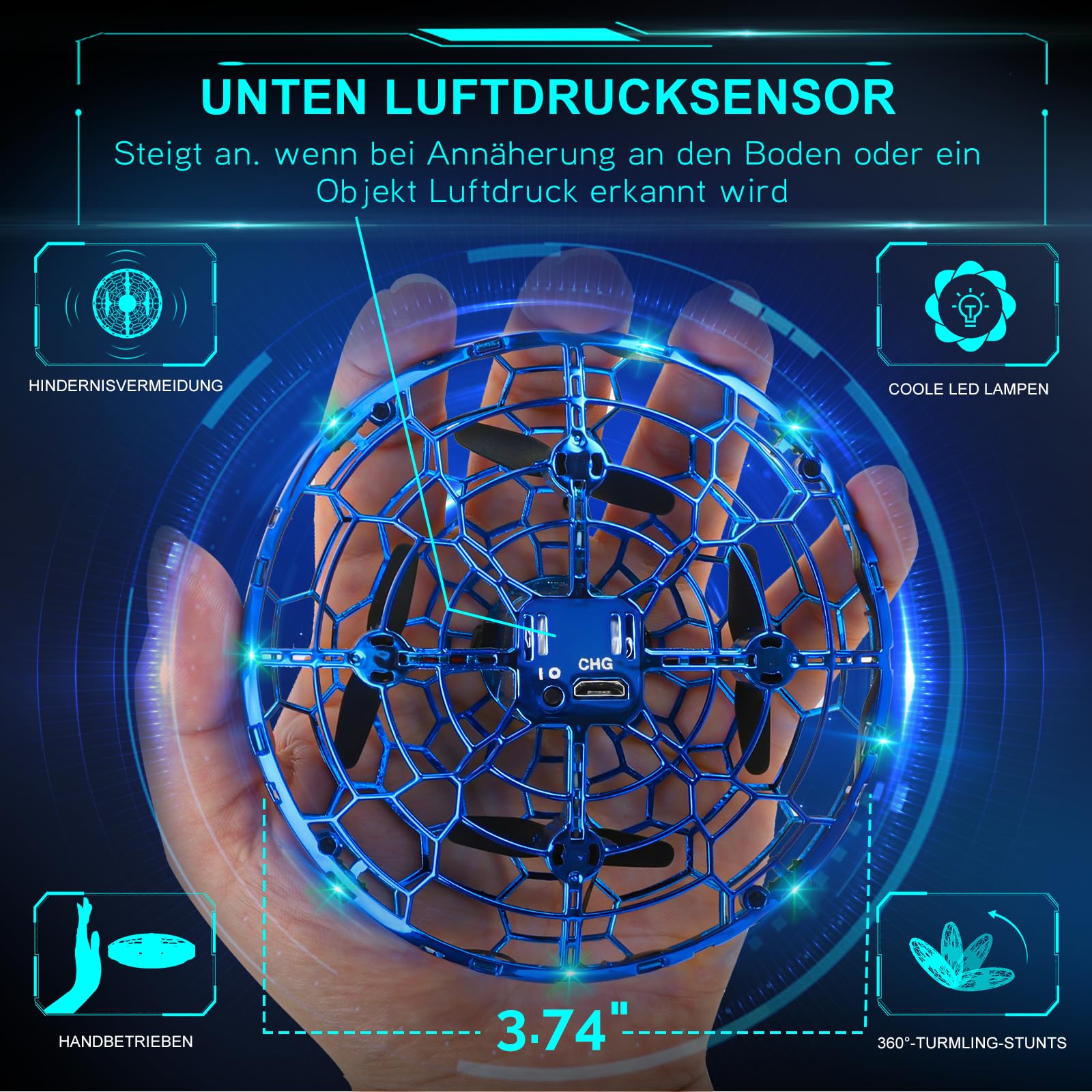 semai Mini UFO Drone Latająca piłka zabawka 360° Obrotowa latająca kula z oświetleniem LED, do użytku w pomieszczeniach i na zewnątrz Prezenty dla dzieci Chłopcy Dziewczęta 6 7 8 9 10+ lat, Niebieski
