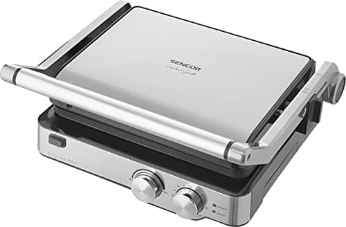 Sencor Wielofunkcyjny elektryczny grill z wyjmowanymi płytami nieprzywierającymi to elegancki i wszechstronny produkt, który zapewni Ci doskonałe doświadczenie grillowania. Ten grill marki SENCOR w kolorze srebrnym i czarnym jest nie tylko estetyczny, ale także funkcjonalny.