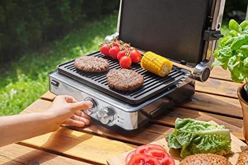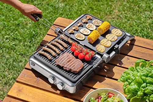 Jedną z głównych cech tego grilla są wyjmowane płyty grillowe z powłoką nieprzywierającą. Dzięki nim możesz gotować zdrowo, bez konieczności dodawania oleju. Powierzchnia grillowa jest gładka, idealna do przygotowywania mięsa, kiełbasek, warzyw, grzybów, ryb oraz bagietek i kanapek.