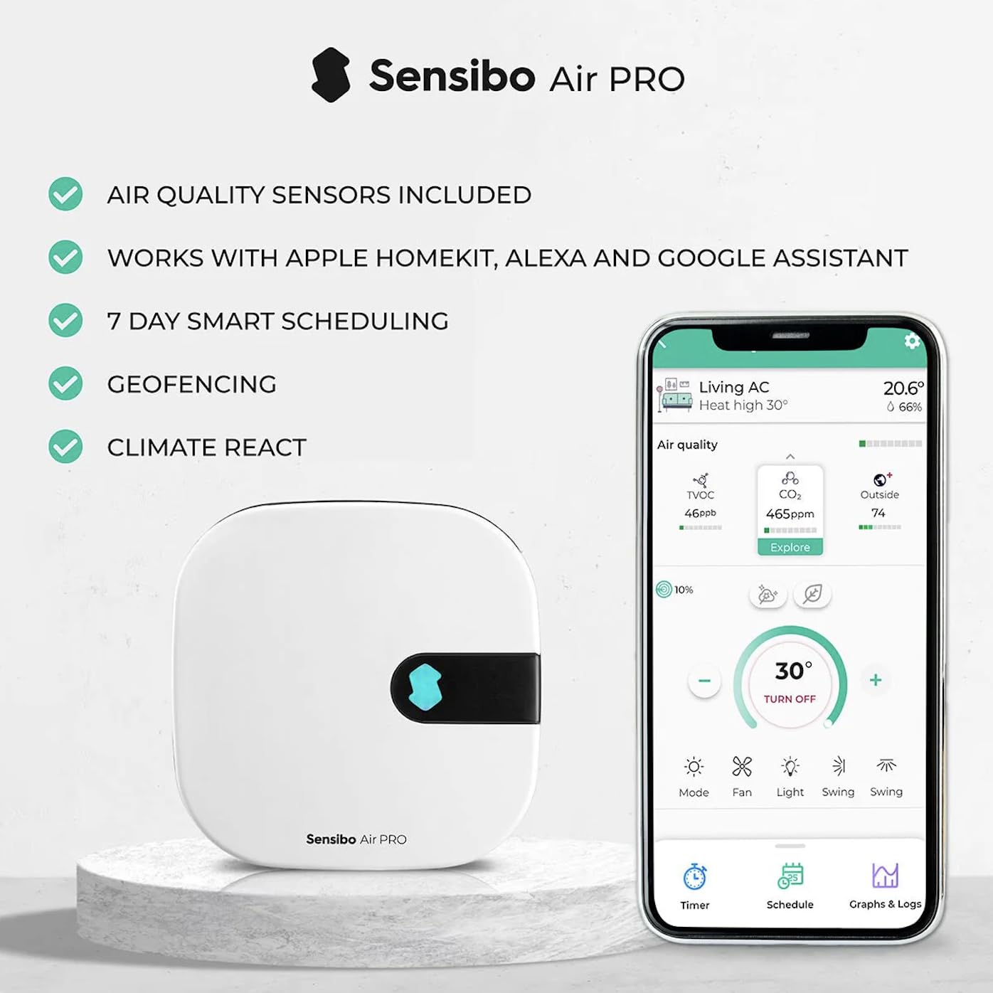 Sensibo Air PRO – Intelligent AC Controller with Air Quality Sensor | AirQ – Detects Indoor Air Quality, Maintains Comfort, Saves Energy | Compatible with Amazon Echo, Google Home, Apple HomeKit