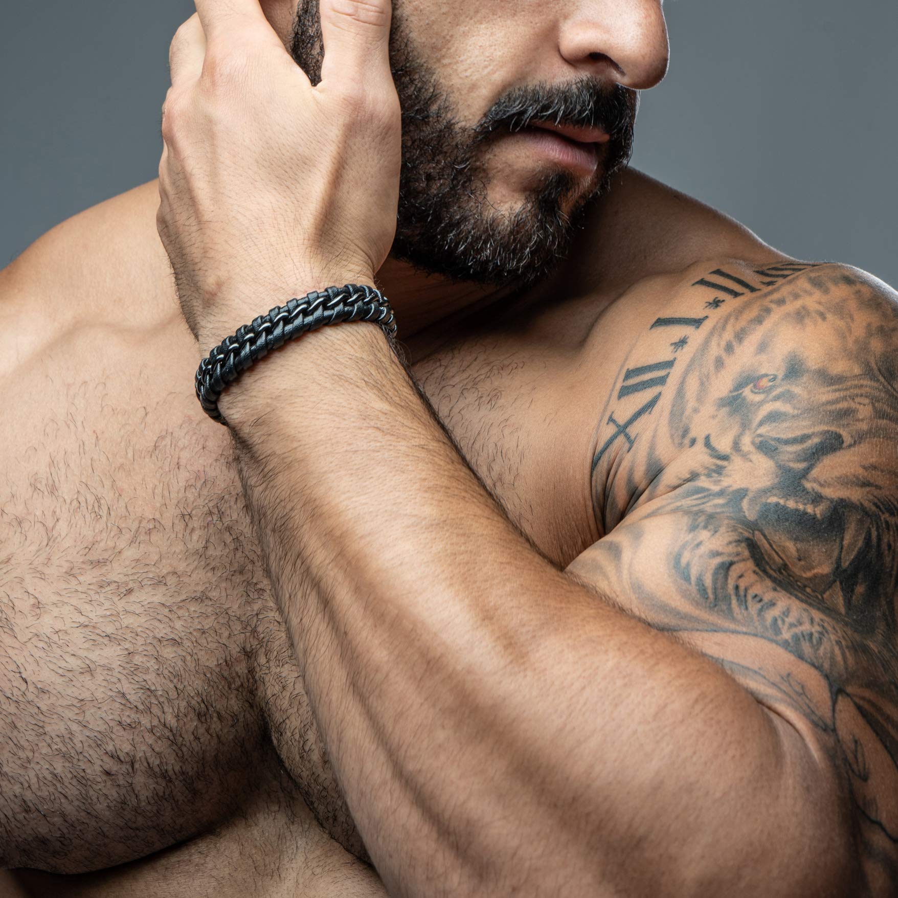 SERASAR Bransoletka Chłopcy 17cm Czarny Mężczyźni Skórzana Bransoletkaa Biżuteria Braided Wrap Skórzany Łańcuchleather