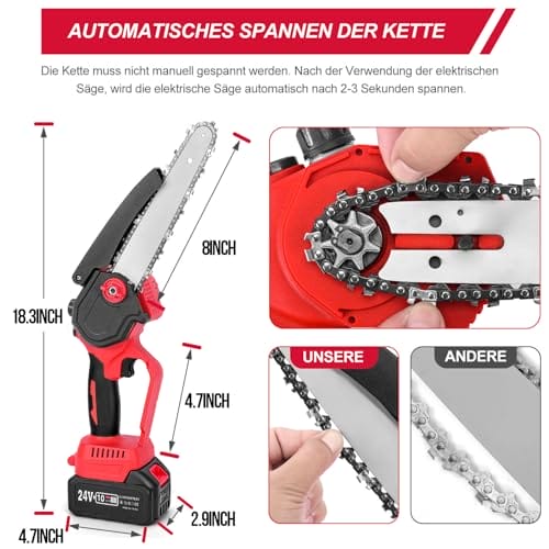 Mini piła łańcuchowa z akumulatorem 8 cali – elektryczna piła łańcuchowa 24 V z automatycznym olejarką i ochroną przed pryskaniem. Ta akumulatorowa piła łańcuchowa o pojemności 30 mAh jest idealna do wszelkich prac ogrodowych. Wyposażona w 2 x ręczną piłę łańcuchową, zapewnia wygodę i precyzję podczas cięcia. Dzięki optymalizacji SEO, nasz produkt Mini piła łańcuchowa z akumulatorem 8 cali jest łatwo dostępny dla klientów. Znajdź więcej informacji w kategorii Piły.
