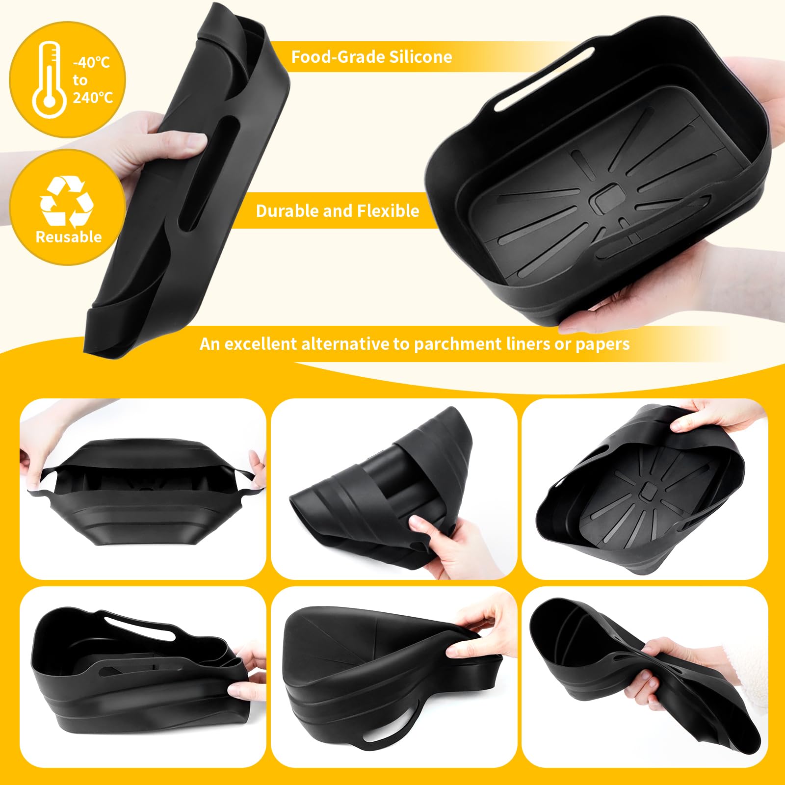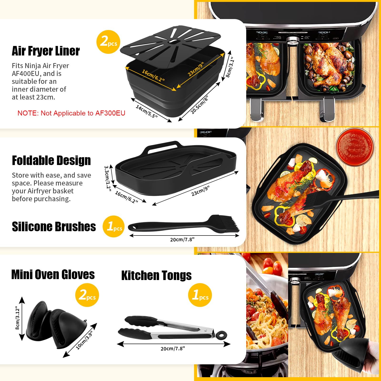 Akcesoria do frytkownicy na gorące powietrze 8 szt. to niezbędny dodatek dla wszystkich miłośników zdrowego jedzenia i smakowitych frytek. Ta forma silikonowa składana została specjalnie zaprojektowana do użytku z frytkownicą na gorące powietrze AF400EU, co sprawia, że przygotowanie ulubionych potraw staje się jeszcze prostsze i wygodniejsze.