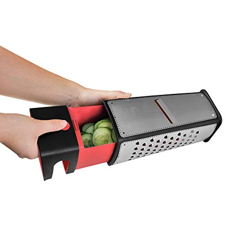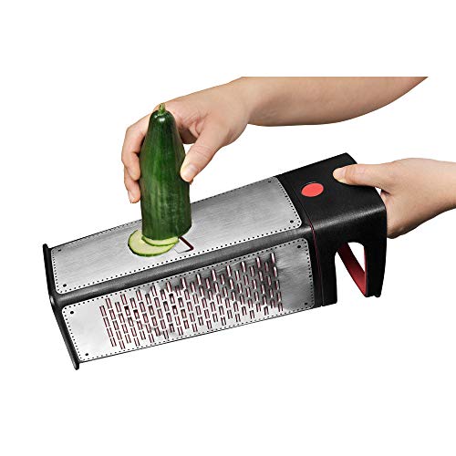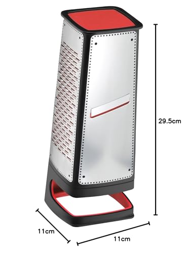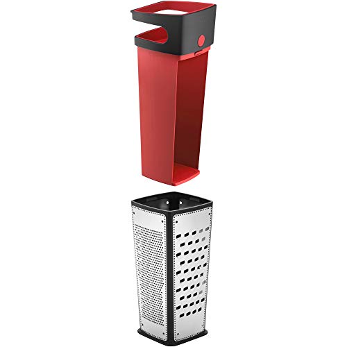 - Materiał: Materiał: stal nierdzewna 18/10, tworzywo sztuczne – nadaje się do mycia w zmywarce, Zawartość: 1 x tarka czworokątna z pojemnikiem na ścinki (29,5 x