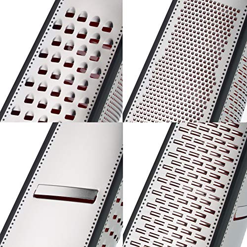 ✅ Wielofunkcyjny: cztery ostre: Wielofunkcyjny: cztery ostre powierzchnie do łatwego tarcia, strugania, tarcia i cięcia. Optymalny kształt tarki umożliwia pewny chwyt podczas przygotowywania i oszczędność miejsca podczas przechowywania w kuchni