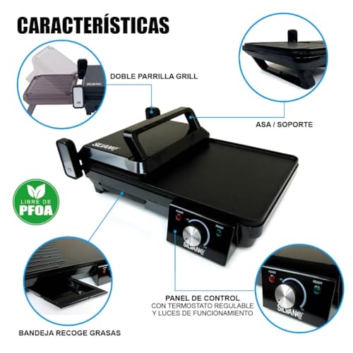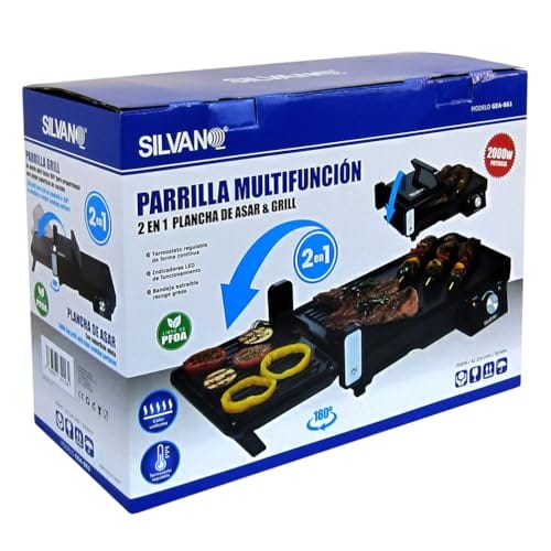 Silvano Wielofunkcyjny Grill – Kuchnia 2 w 1 2000W Żelazko do pieczenia i Grill Nieprzywierający Regulowany termostat Podwójny grill 180º Mieszana powierzchnia to produkt, który sprawi, że gotowanie stanie się prawdziwą przyjemnością. Moc, wszechstronność i bezpieczeństwo łączą się, aby zapewnić doskonałe rezultaty przy każdym posiłku.