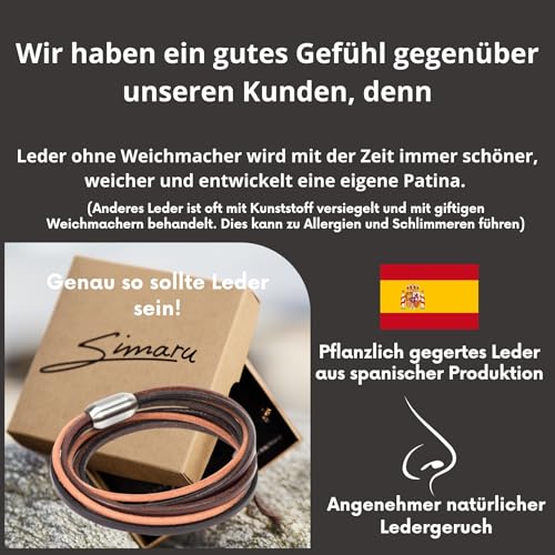 Bransoletka skórzana SIMARU z zapięciem magnetycznym – Made in Germany, przyjazna dla alergików