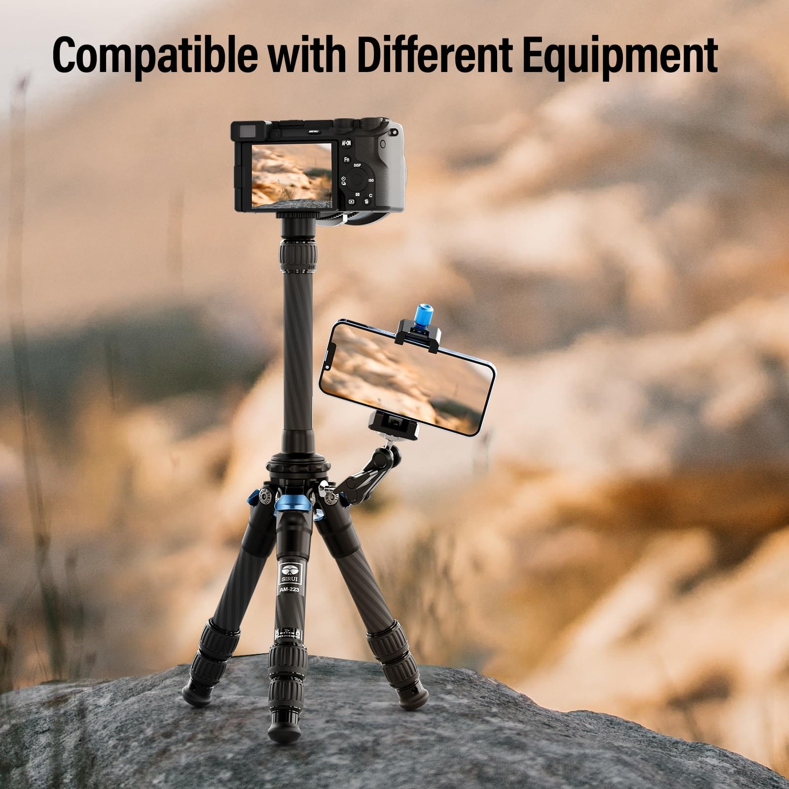 SIRUI AM-223+SL-100 mini statyw stołowy z wysuwaną kolumną środkową, lekki statyw stołowy do aparatów, zamków obrotowych, kolców, maks. 660 mm wciągnięty 215 mm, nośność 12 kg