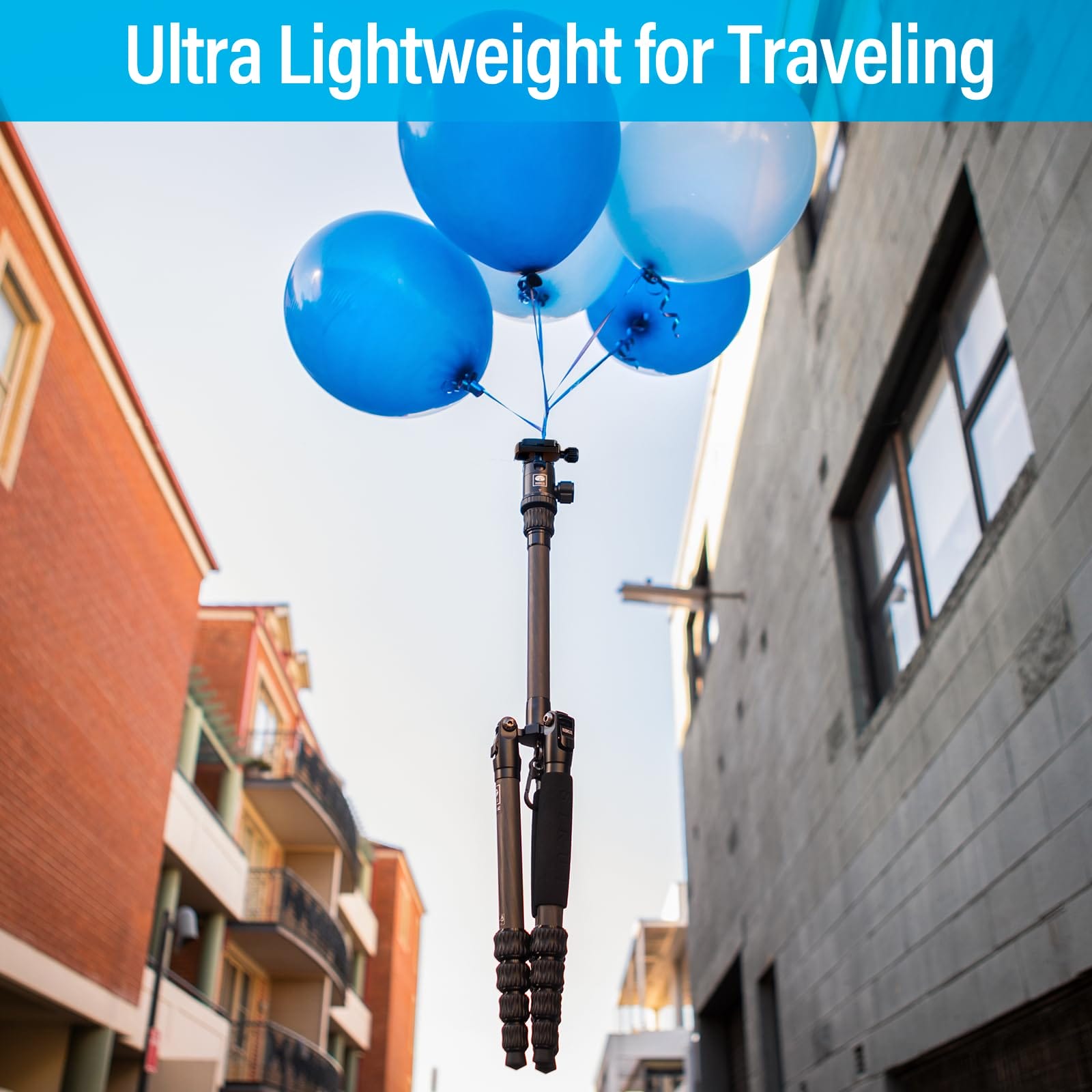 Statyw posiada 5-częściowe nogi z włókna węglowego, które można regulować i wysuwać za pomocą szybkiego zapięcia skrętnego. Dzięki temu można łatwo dostosować wysokość roboczą statywu od 16 cm do 140 cm w zaledwie kilka sekund. Po złożeniu, statyw ma wysokość 33 cm. Dodatkowo, statyw posiada 3-pozycyjny system regulacji kąta nóg, co umożliwia elastyczne fotografowanie w różnych scenariuszach i warunkach.
