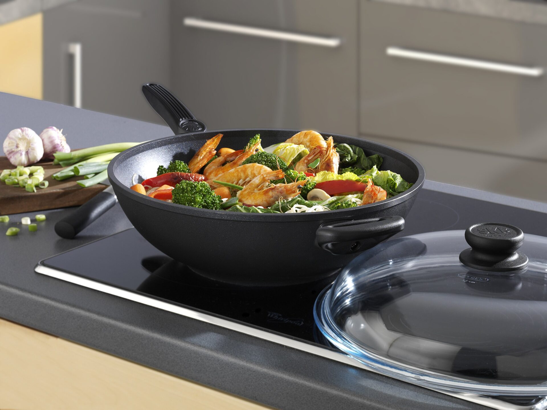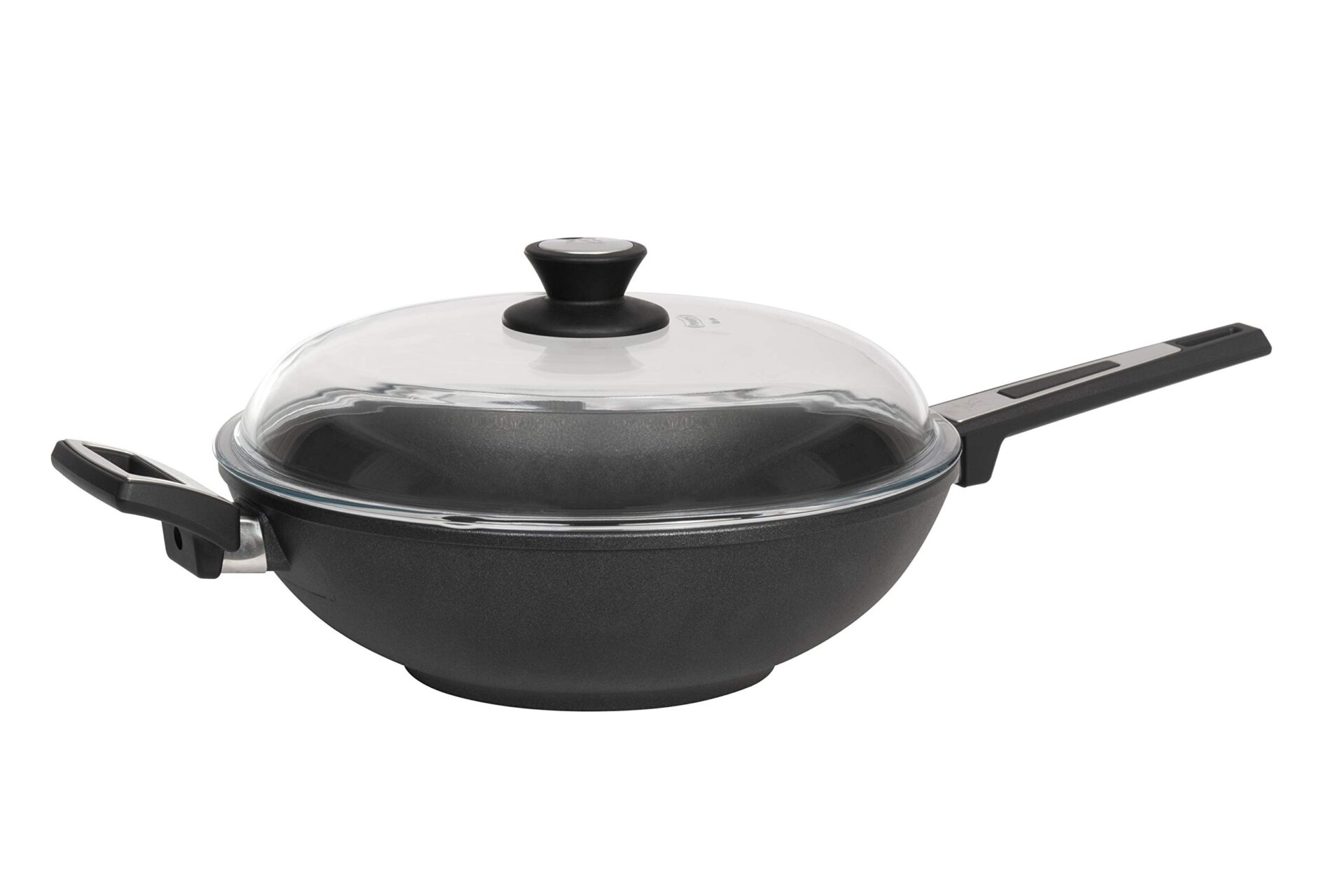 SKK Patelnia żeliwna typu wok 2761, średnica 32 cm, patelnia z powłoką nieprzywierającą, nadaje się do płyt indukcyjnych, wzmocniona ceramiką, z mocnym uchwytem, nadaje się do użycia w piekarniku, Mad