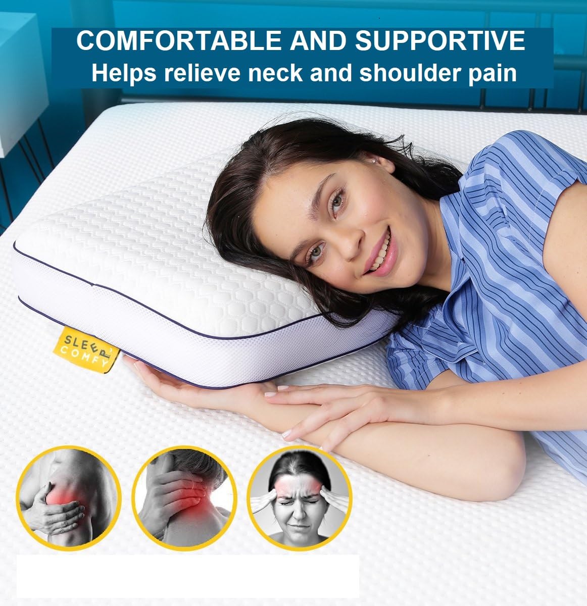 SLEEP COMFY Poduszka podpierająca kark premium z poszewką poduszka Visco z pamięcią kształtu certyfikat Öko-Tex ergonomiczna ortopedyczna poduszka pod kark poduszka do spania dla osób śpiących na brzuchu na boku