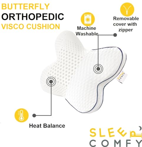 SLEEP COMFY Poduszka w kształcie motyla premium z ortopedycznej pianki z pamięcią kształtu, certyfikat Oeko-Tex, ergonomiczna poduszka podpierająca ka