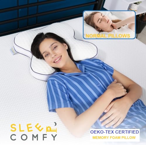 SLEEP COMFY Poduszka w kształcie motyla premium z ortopedycznej pianki z pamięcią kształtu, certyfikat Oeko-Tex, ergonomiczna poduszka podpierająca kark, zapobiega bólom karku i migrenom, idealna dla