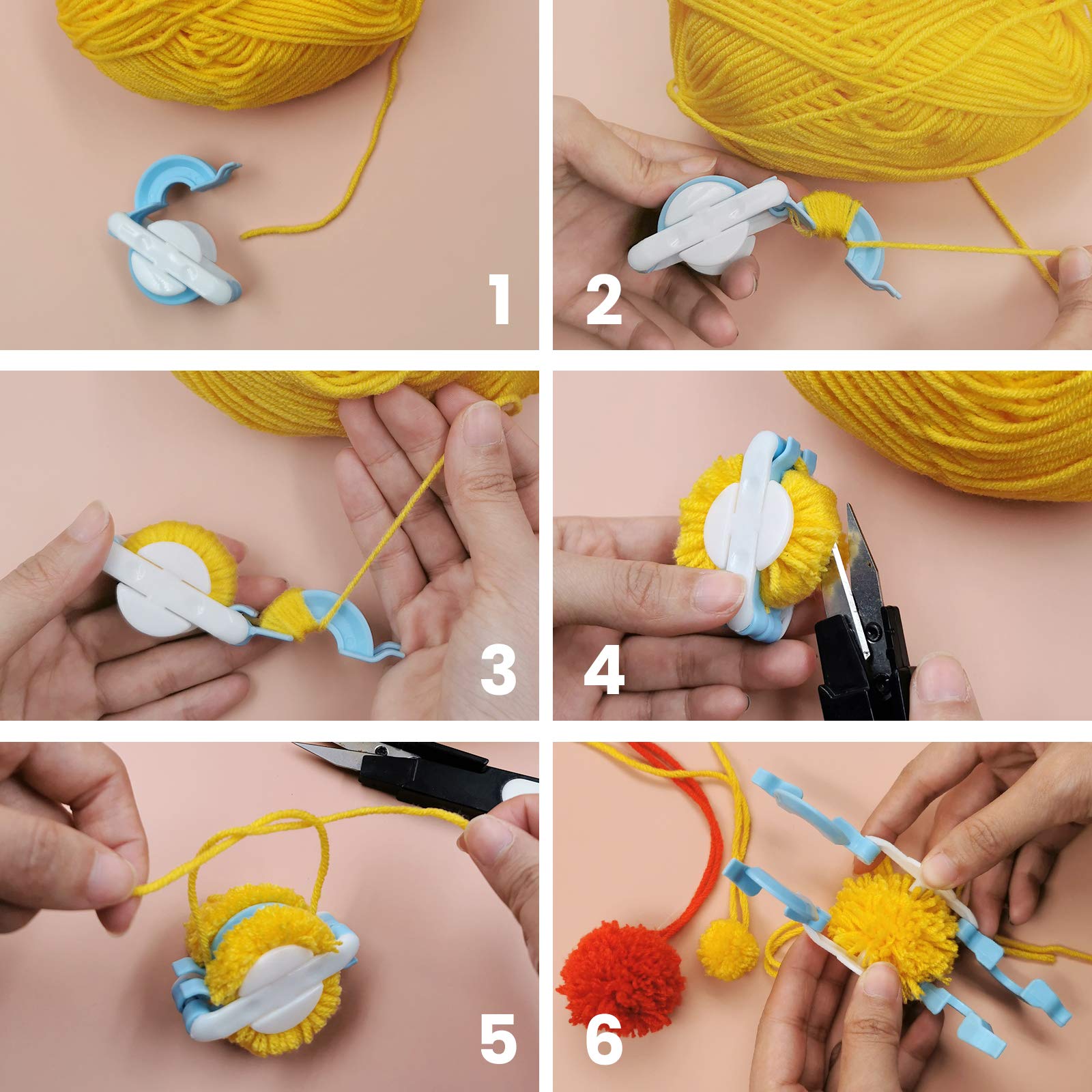 Szerokie zastosowanie: Ten: Szerokie zastosowanie: Ten zestaw do robienia pomponów może być używany do tworzenia kolorowych kulek do włosów o różnych rozmiarach. Może być używany do szycia, rękodzieła itp. Możesz użyć żarówki do dekoracji swetra lub butów, spinek do włosów, kolczyków, broszek, dywanów, kwiatów i tak dalej