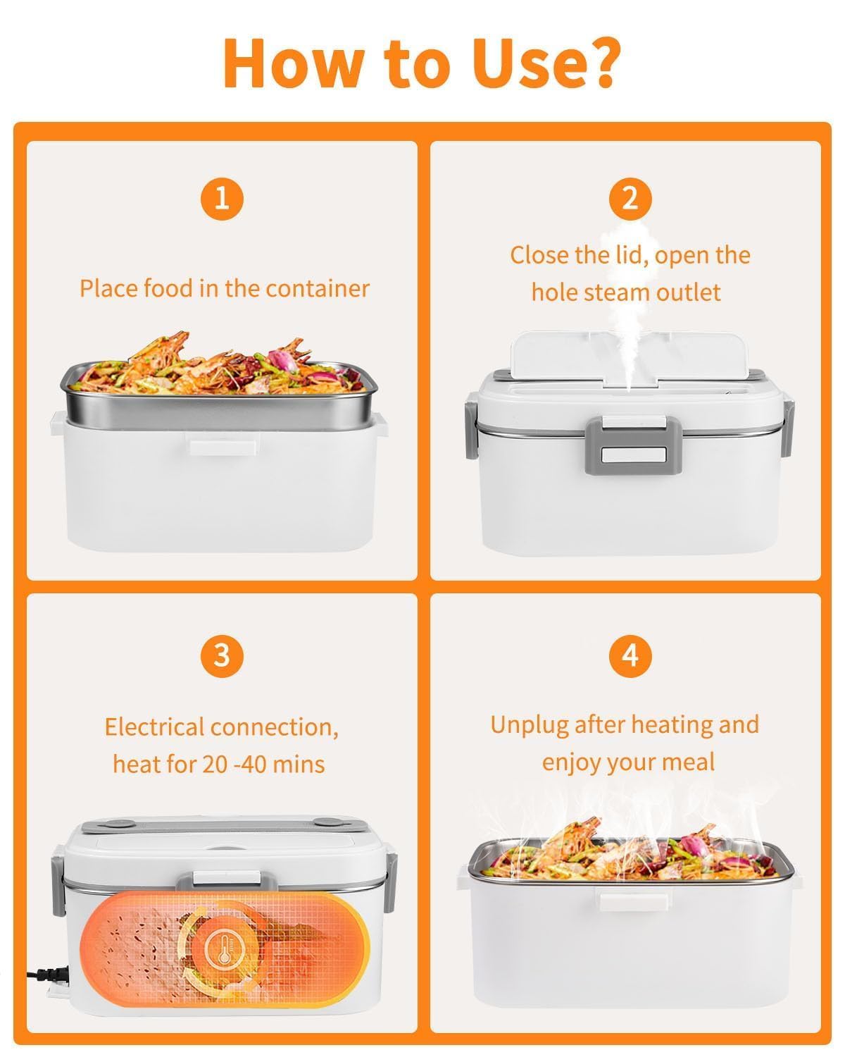 SOBEAU Elektryczny pojemnik na lunch termiczny: Doskonałe rozwiązanie 3 w 1