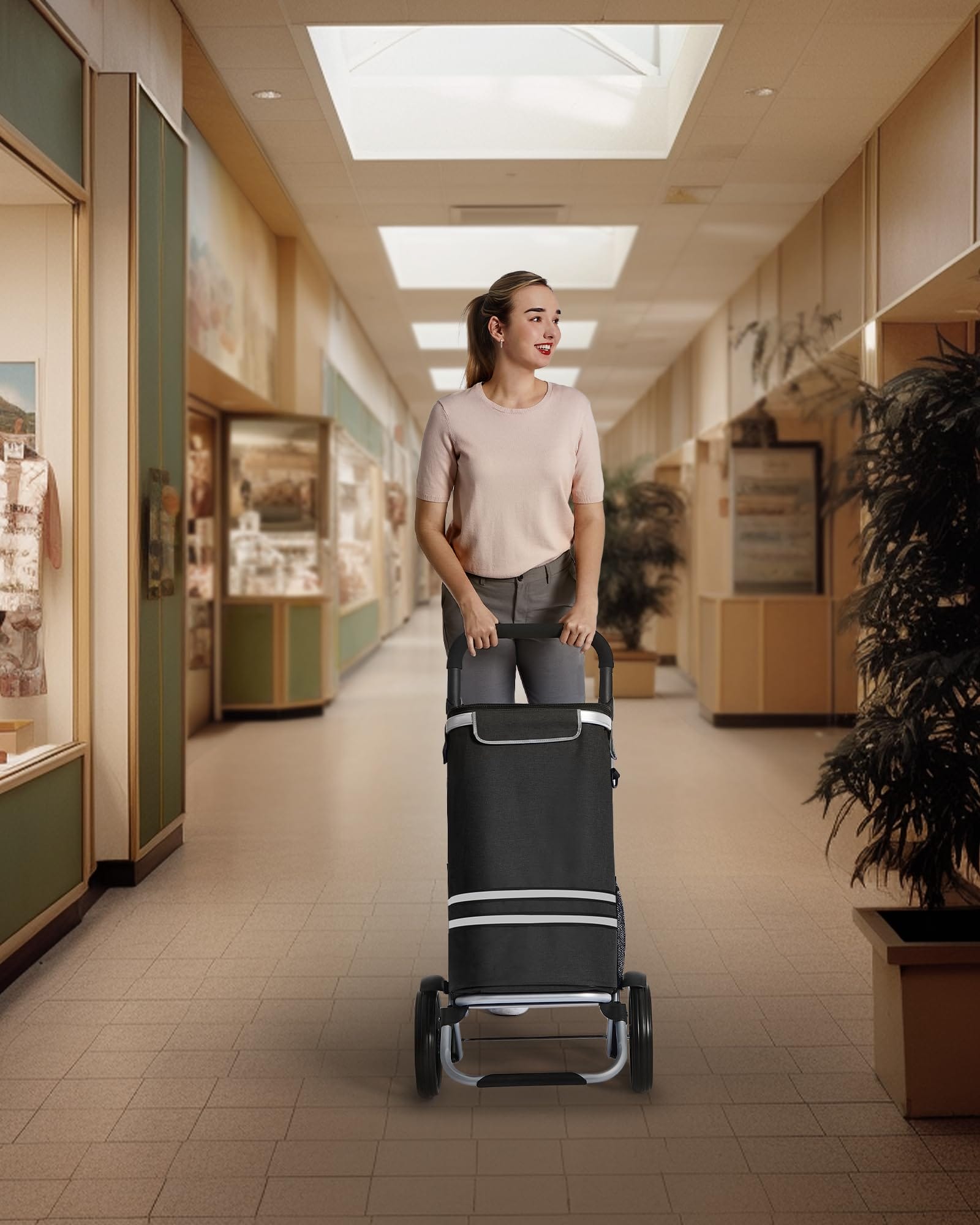 ✅ ŁATWY MONTAŻ ZA: ŁATWY MONTAŻ ZA POMOCĄ RZEPÓW: Wyjątkowo lekki aluminiowy stelaż wózka na zakupy można szybko rozłożyć, a wytrzymała torba z poliestru może być łatwo zamocowana dzięki zapięciu na rzepy. Koła są zamontowane za pomocą „kliknięcia” na przycisk pośrodku, maks. Udźwig: 25 kg