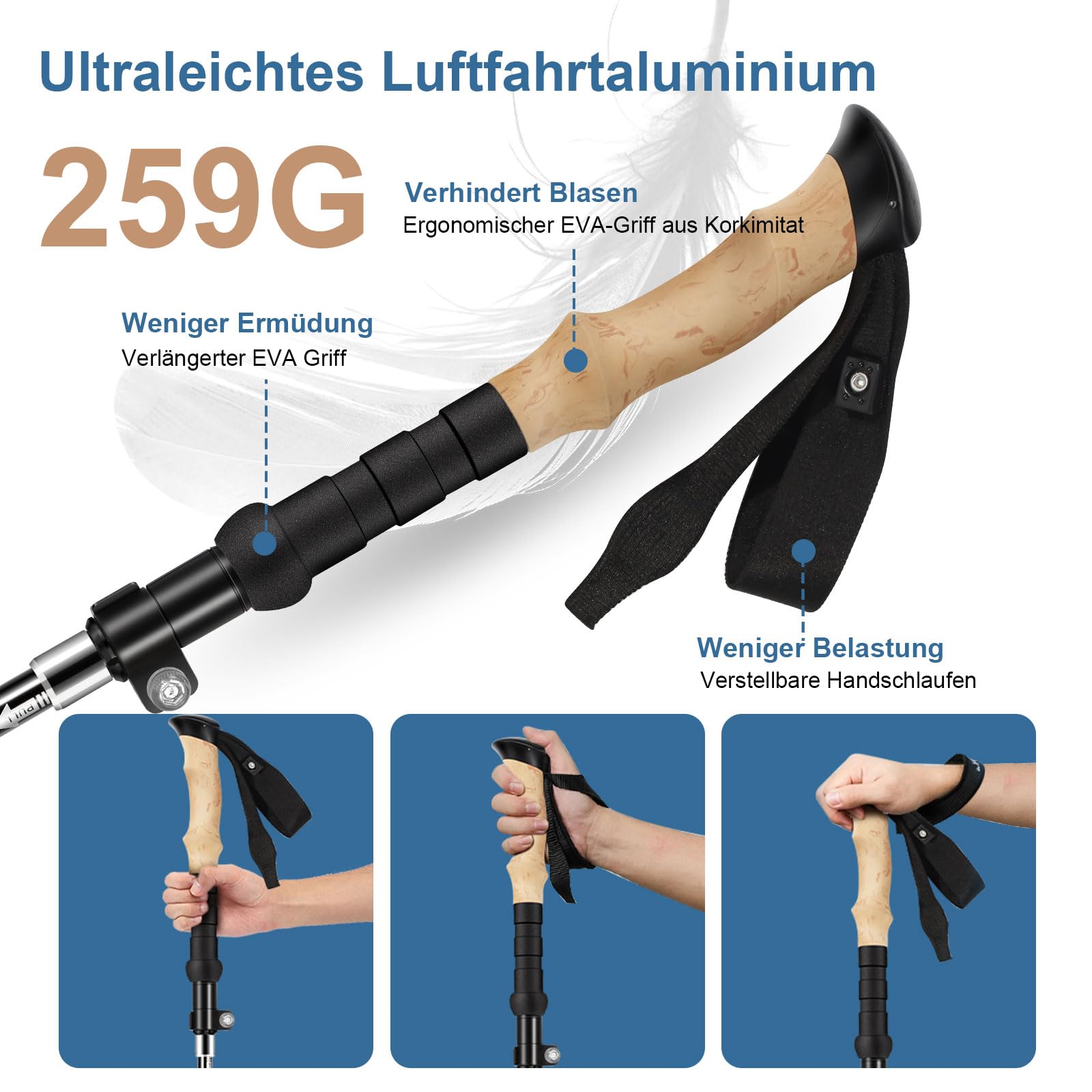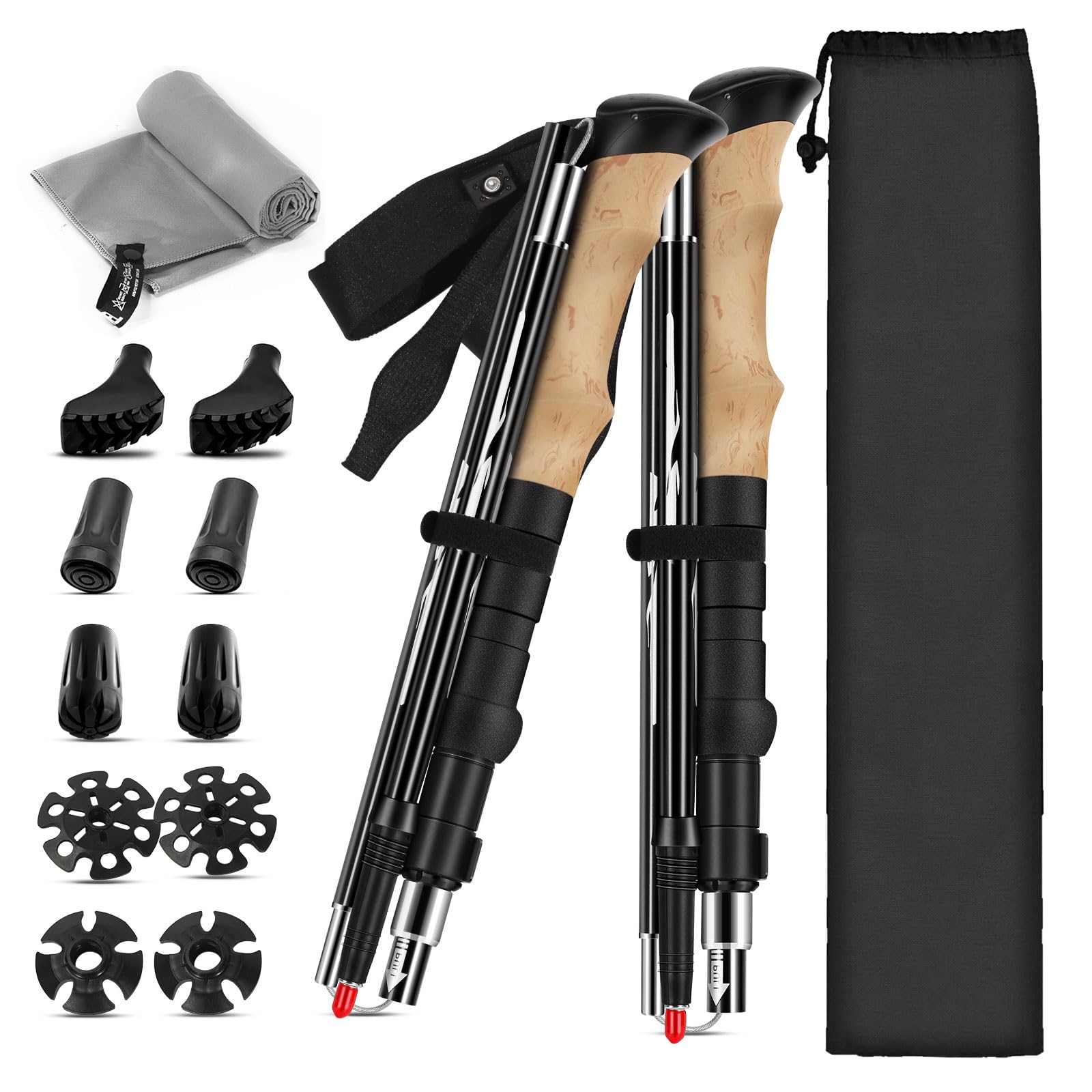 Niezwykle ergonomiczne uchwyty korkowe zapewniają komfort podczas długich wędrówek, redukując zmęczenie dłoni. W zestawie znajduje się również praktyczny ręcznik z mikrofibry oraz 10 akcesoriów turystycznych, które sprawią, że każda wyprawa będzie jeszcze bardziej komfortowa i bezpieczna.