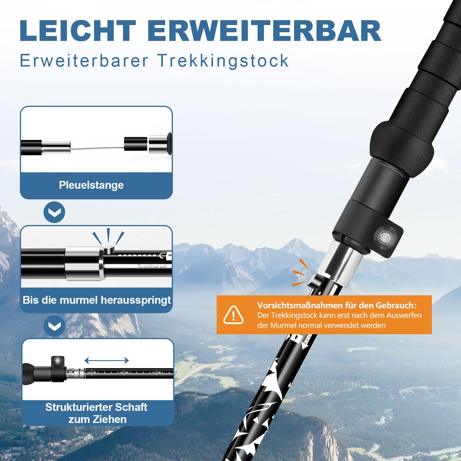 2. Wysoka jakość wykonania – kijki wykonane z trwałego materiału zapewniającego stabilność i wytrzymałość podczas wspinaczki.