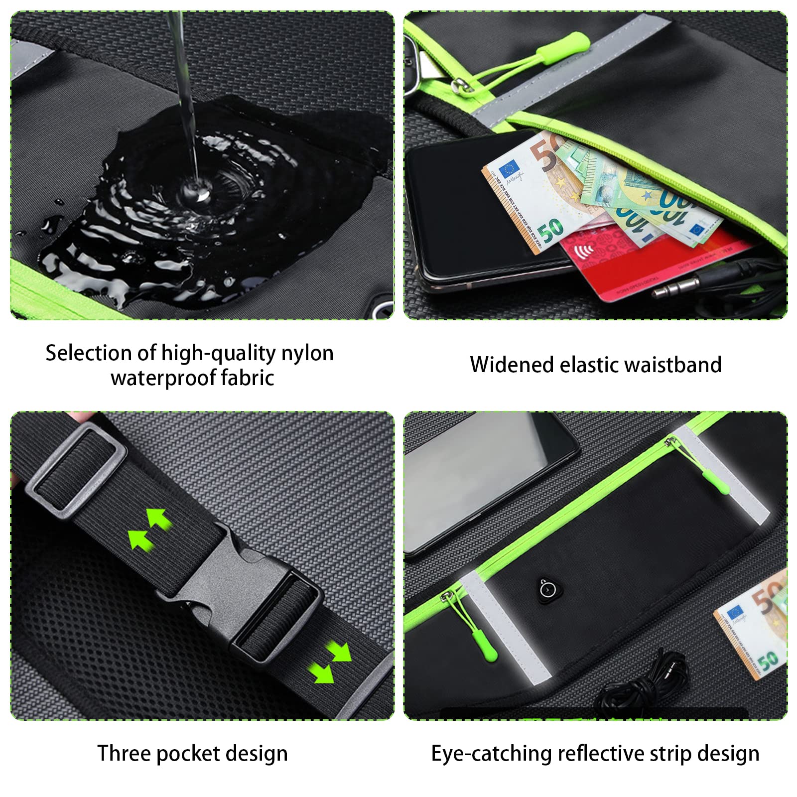 • 【Wodoszczelna sportowa saszetka na brzuch dla kobiet i mężczyzn】Zestaw zawiera: 1 x sportowy pasek do biegania, 1 x sportowa opaska na włosy; kieszeń na telefon komórkowy z odblaskowymi paskami zapewniającymi bezpieczeństwo i widoczność w nocy. Konstrukcja ta sprawia, że są one bezpieczniejsze podczas biegania w nocy.