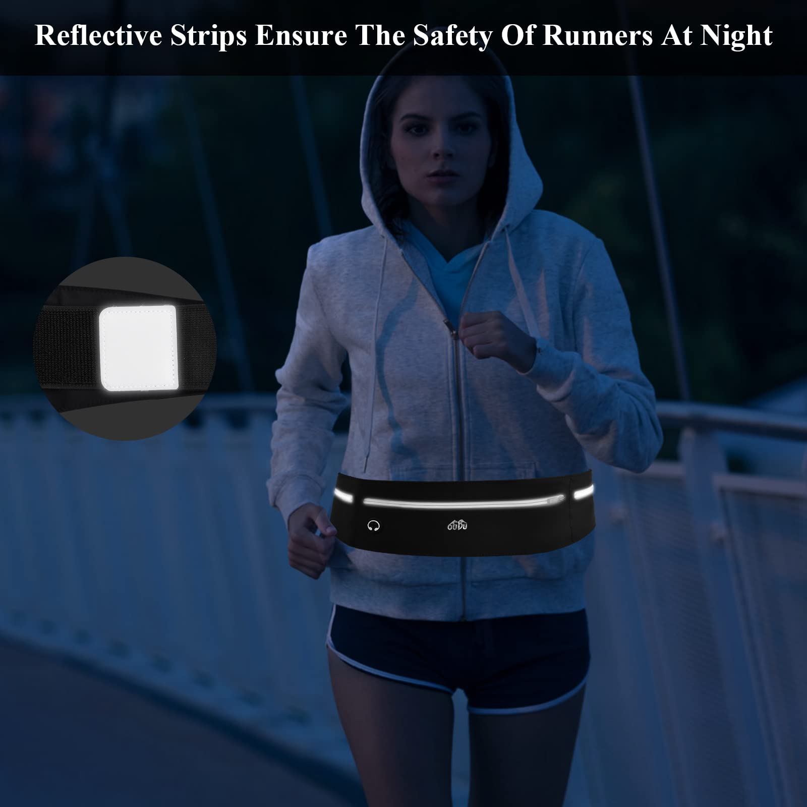• Bezpieczna taśma odblaskowa: zamek błyskawiczny jest pokryty odblaskową taśmą, która zapewnia dobrą widoczność i sprawia, że bieganie lub chodzenie w nocy jest bezpieczniejsze.
