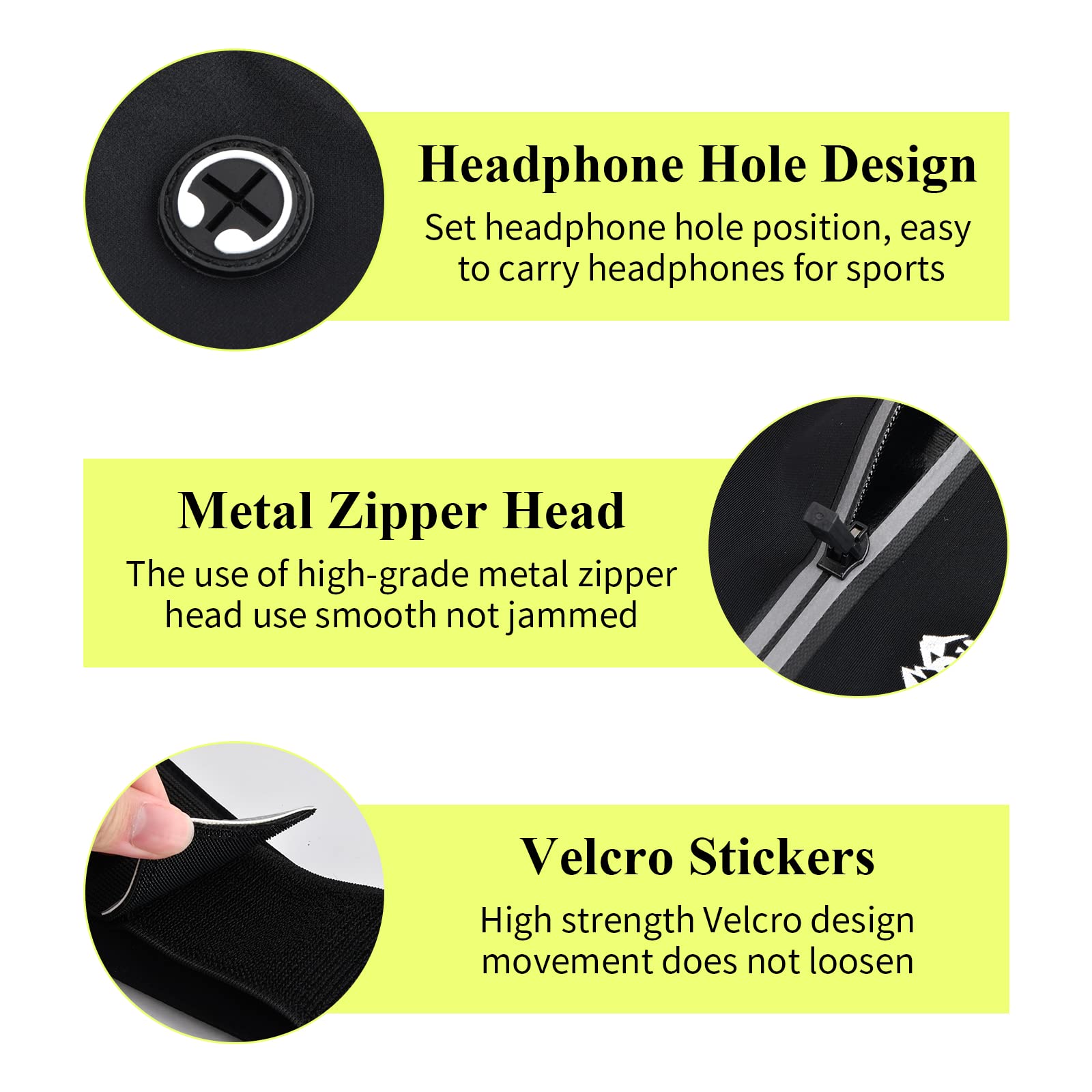 • Trzy kieszenie i otwór na słuchawki: praktyczny do przechowywania telefonu, kluczy, gotówki itd. Wyposażony w otwór na słuchawki, który można łatwo zabrać ze sobą podczas uprawiania sportu.