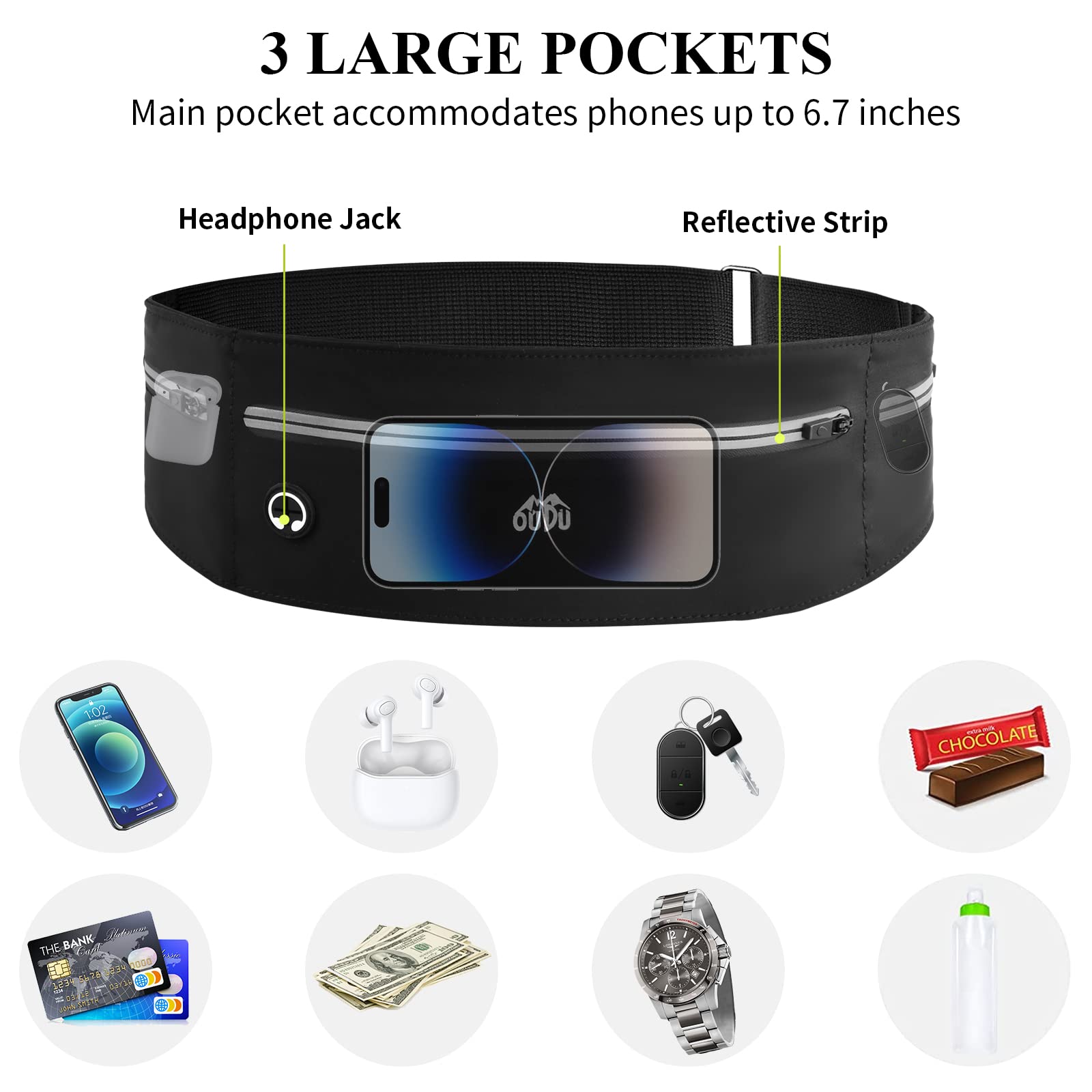 • Wysoka jakość: Sportowa męska torba biodrowa wykonana z wysokiej jakości lycry, jest oddychająca i wygodna. Wodoodporny materiał i zamek błyskawiczny umożliwiają bezpieczne przechowywanie przedmiotów.