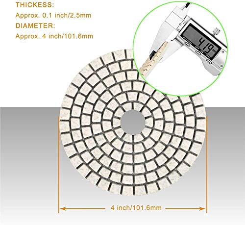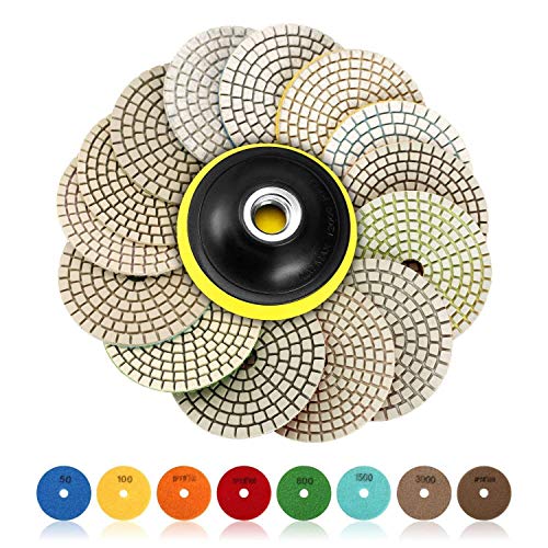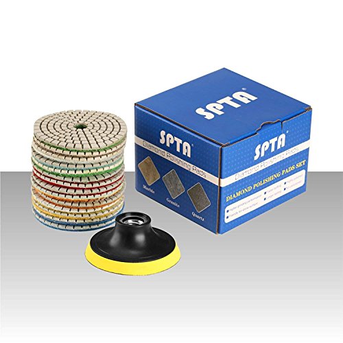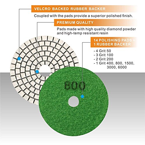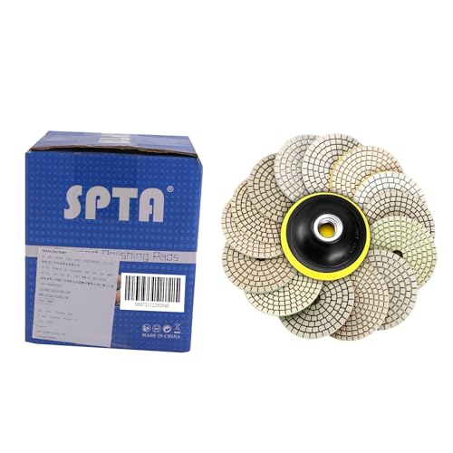 SPTA 15 szt. Zestaw diamentowych podkładek do polerowania na mokro, 4-calowe (10 cm) podkładki do granitu, betonu, marmuru, szlifierki podłogowej lub polerki, 50#-6000# z podkładką mocującą na rzep