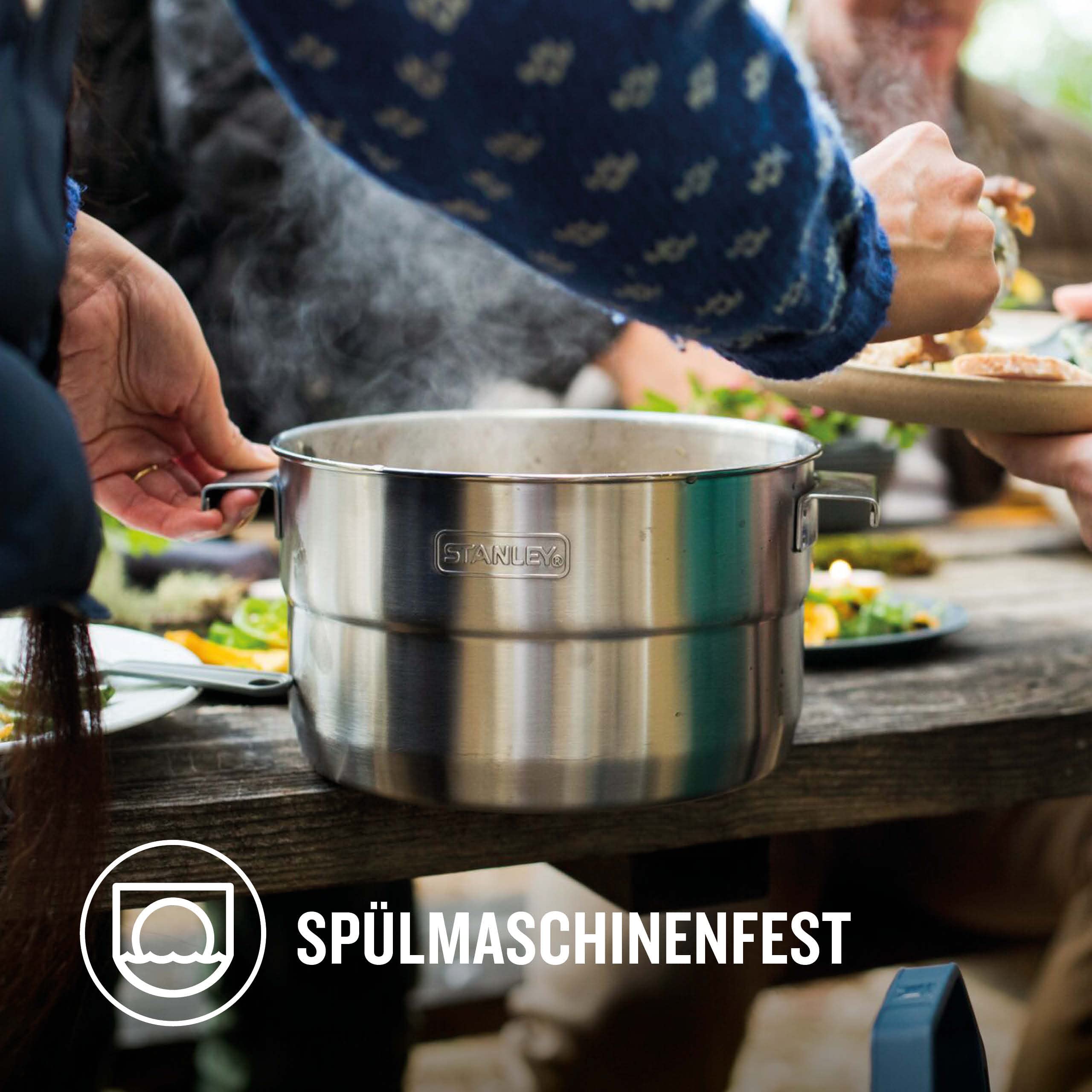 WYGODA MYCIA: Turystyczny: WYGODA MYCIA: Turystyczny zestaw do gotowania został zaprojektowany z myślą o wygodzie mycia; Każdy element zestawu do gotowania ze stali nierdzewnej jest przeznaczony do mycia w zmywarce, wyłącznie w górnym koszu