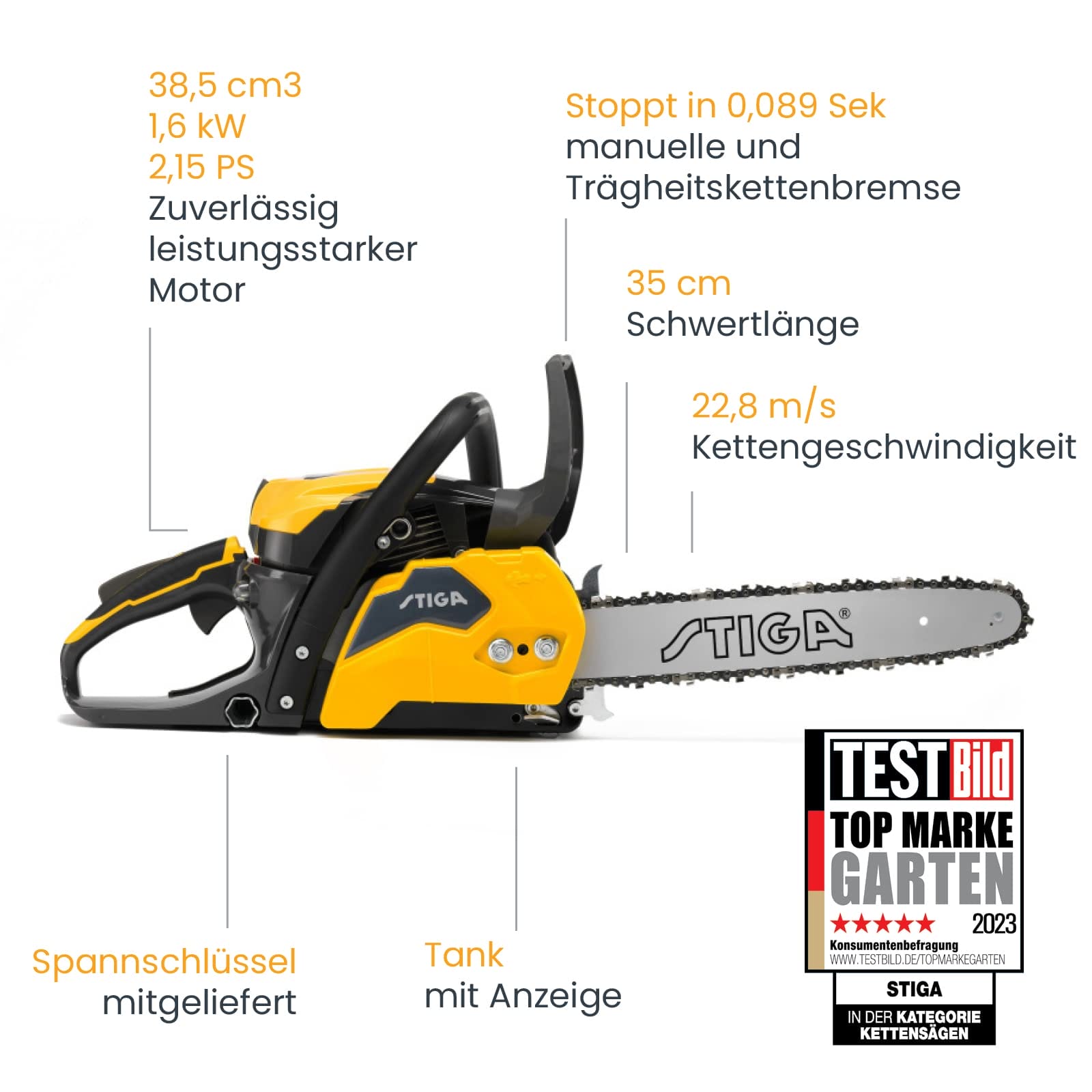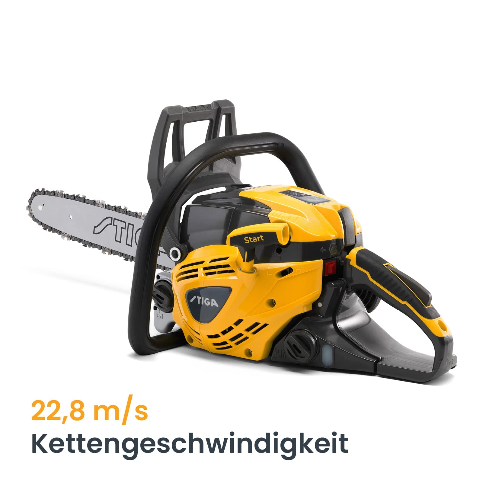 Dzięki tej piłce łańcuchowej STIGA możesz łatwo i skutecznie przeprowadzać prace w ogrodzie czy przydrewnianej konstrukcji. Bez względu na to, czy potrzebujesz przyciąć gałęzie czy przygotować drewno na opał, ta piła spełni Twoje oczekiwania.