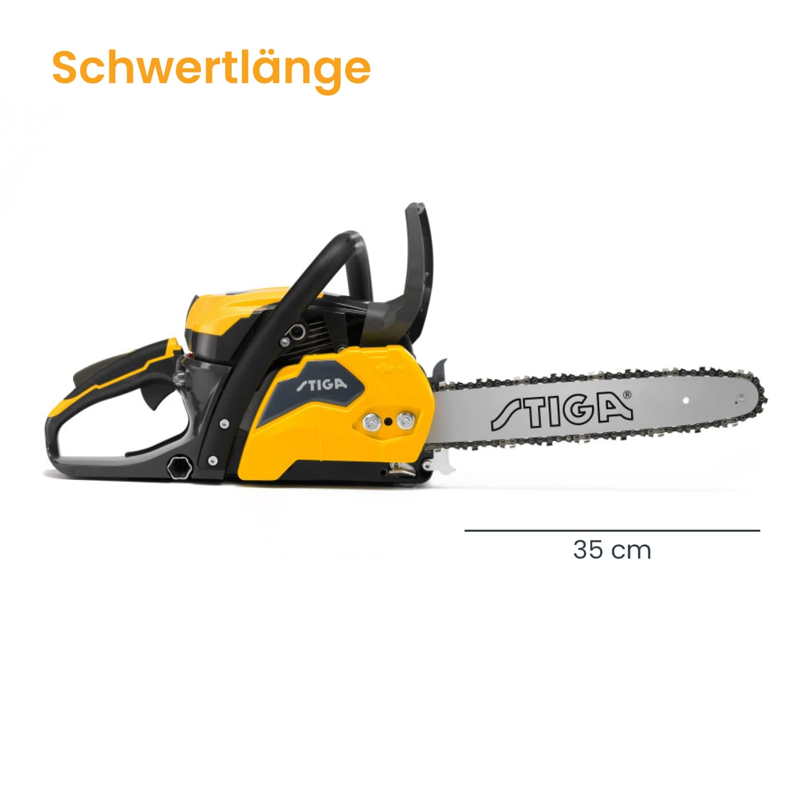 STIGA Benzynowa piła łańcuchowa CS 540 (14″) do cięcia drewna w domu szyna do cięcia 35 cm 1600 W automatyczna pompa olejowa.