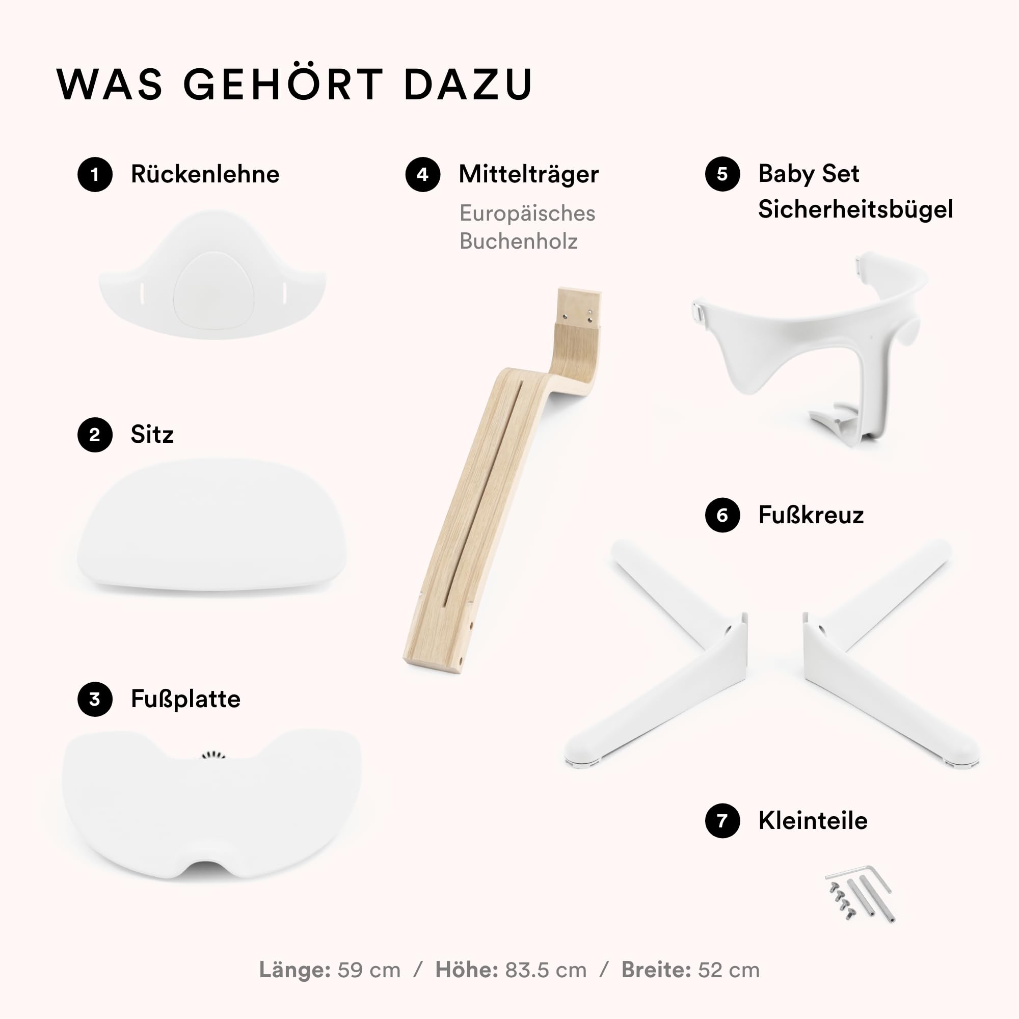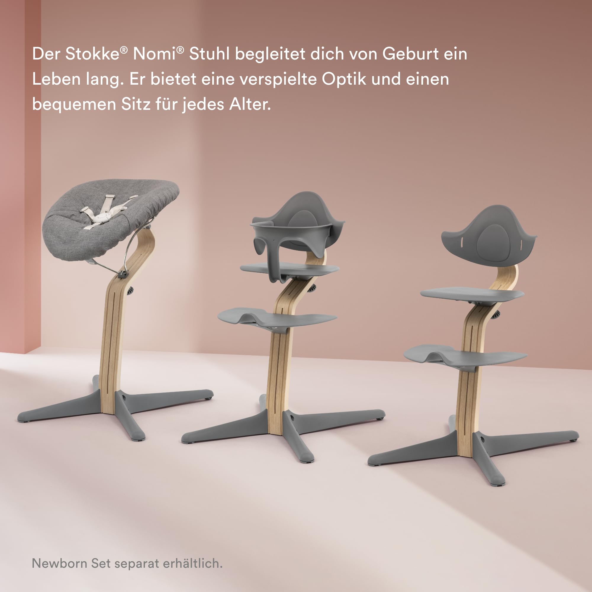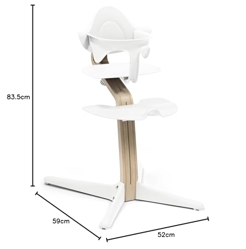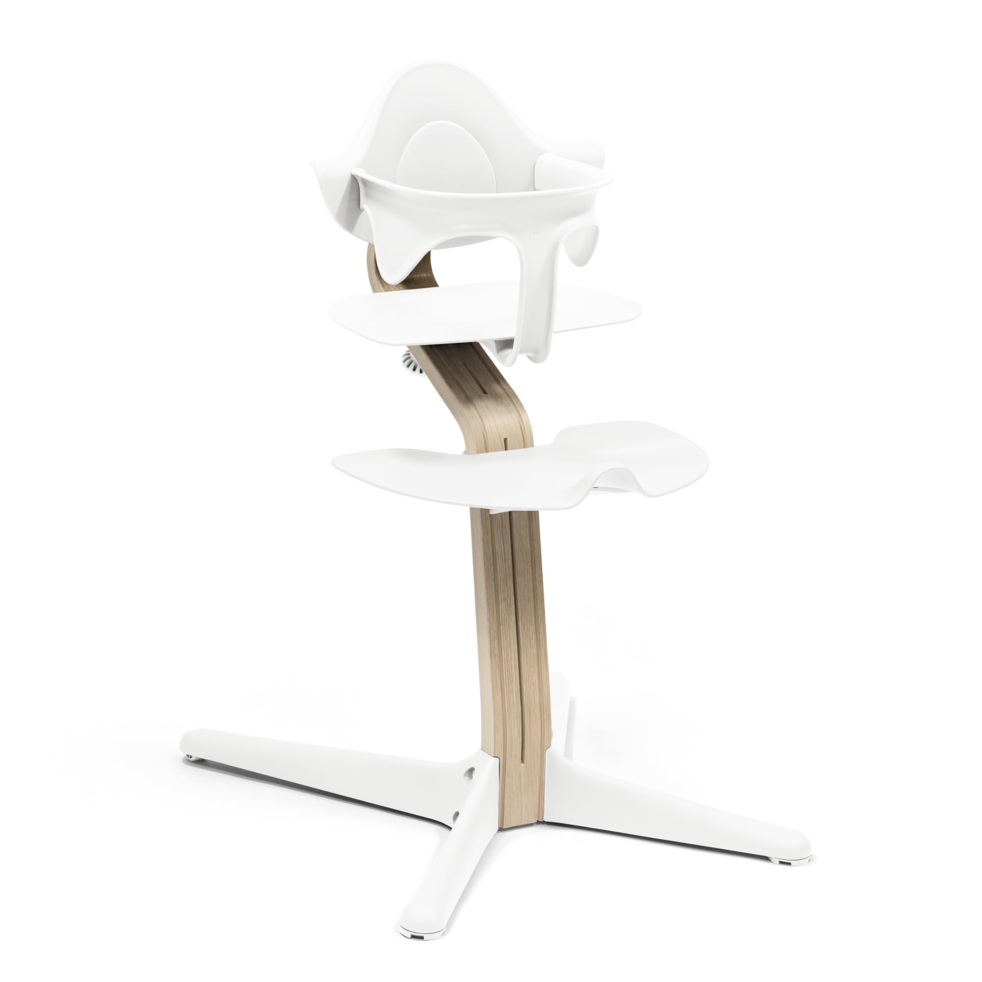 Krzesełko Stokke Nomi z zestawem dla niemowląt, białe – inspiruje do aktywnego siedzenia i zapewnia wsparcie, gdy dziecko uczy się siedzieć – wytrzymuje obciążenie do 150 kg