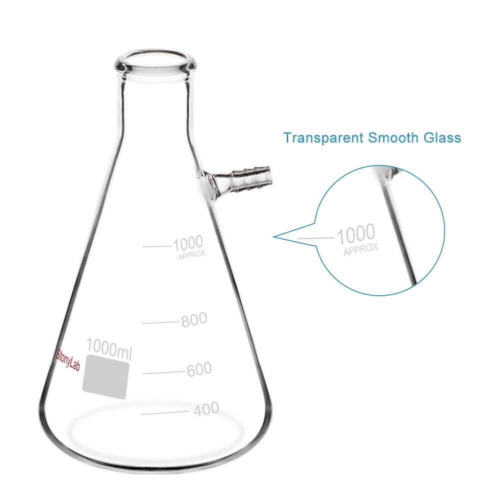 StonyLab 1000 ml butelka filtrująca ze szkła borokrzemowego, szyjka z tubulacją, 1 l (1 litr)