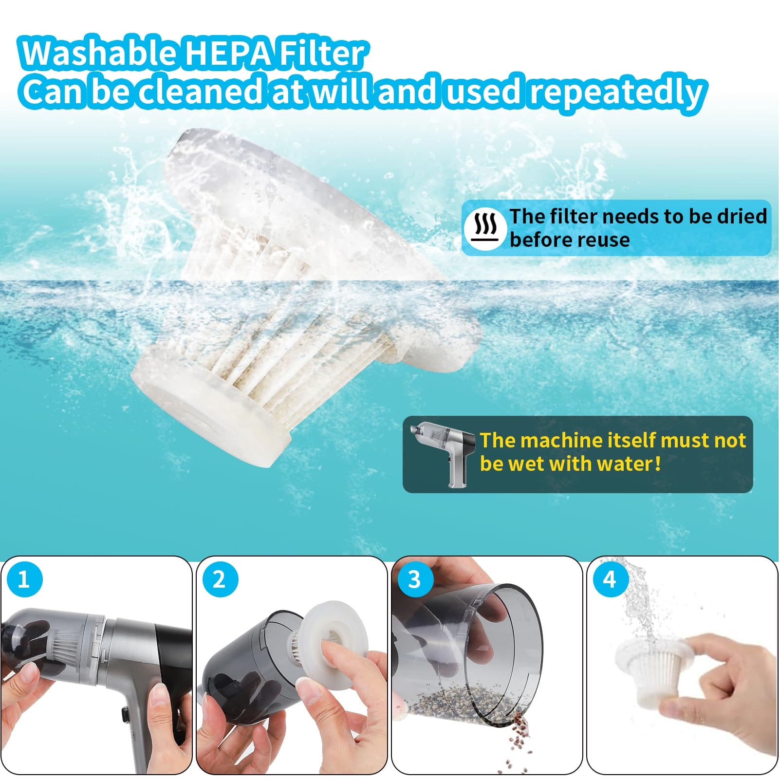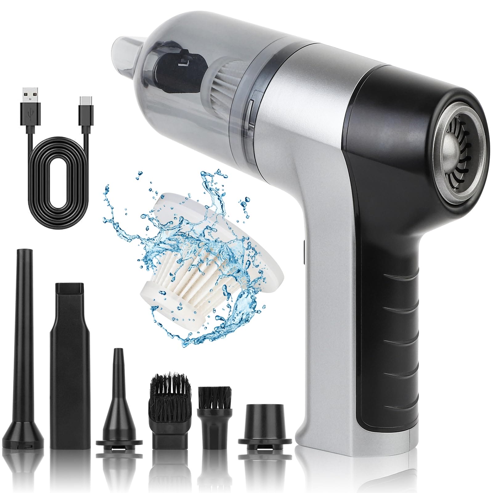Ten bezprzewodowy odkurzacz ręczny ma wysoką jakość wykonania. Wykorzystuje filtr HEPA, który można prać i ponownie używać, a także wyposażony jest w pojemnik na kurz z podwójnym zapięciem, które skutecznie zapobiegają przypadkowemu wypadnięciu pojemnika podczas użytkowania. Po użyciu można go szybko rozłożyć i wygodnie usunąć śmieci. Kup teraz ten przenośny odkurzacz ręczny i ciesz się nim od razu.