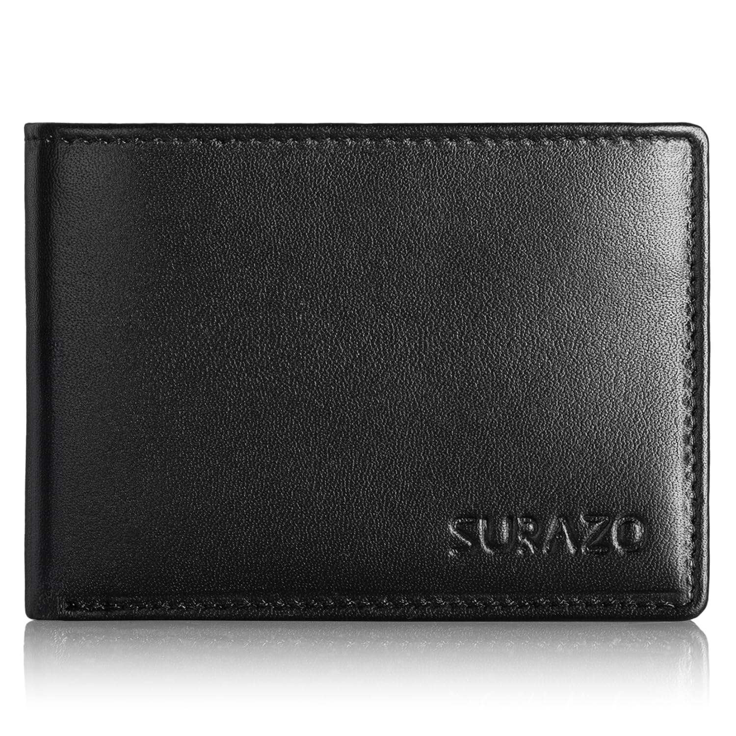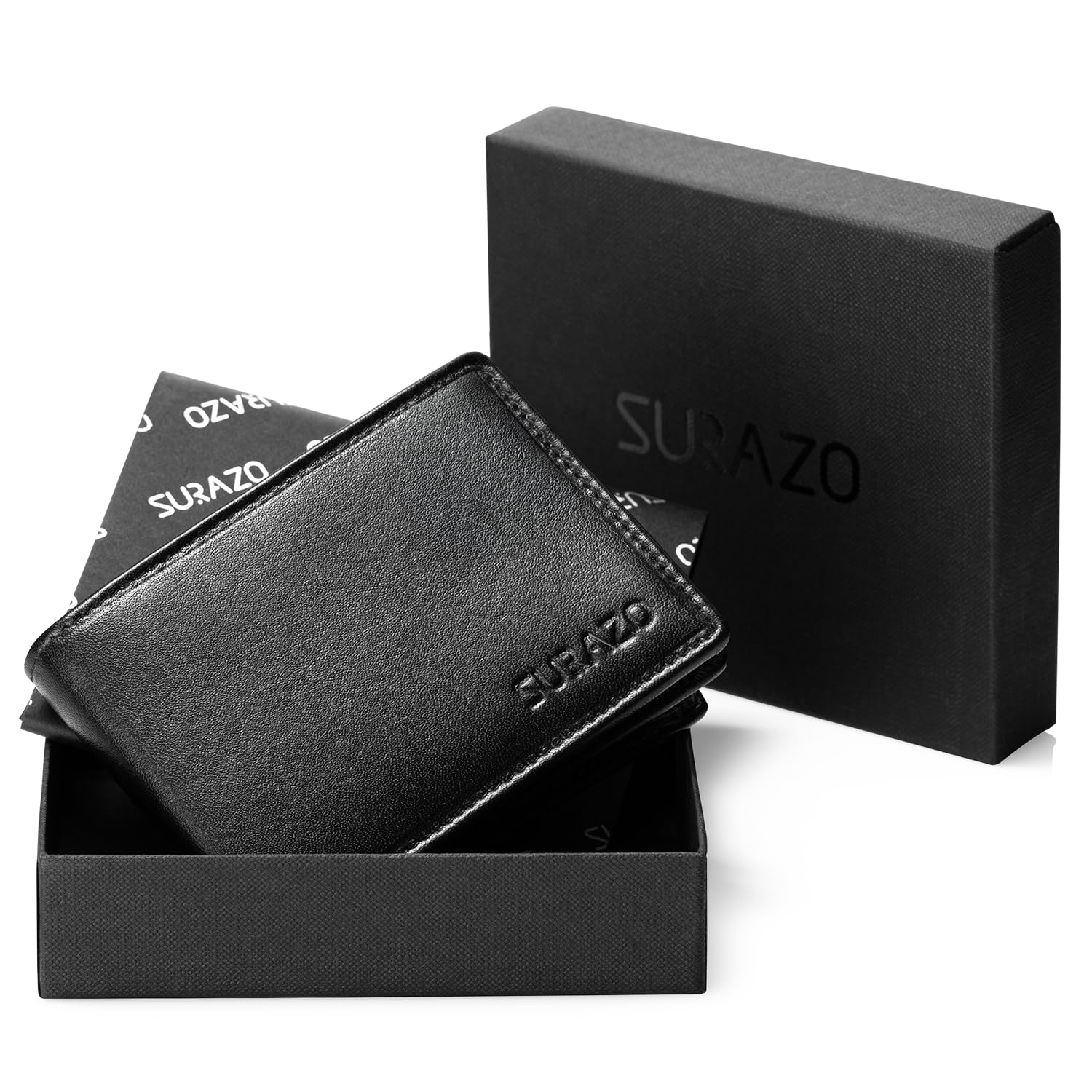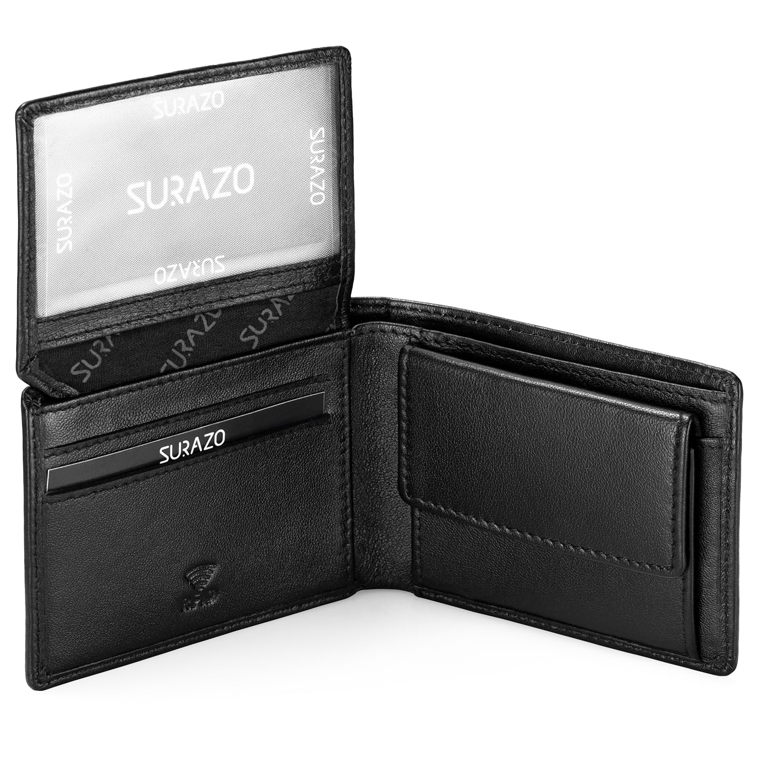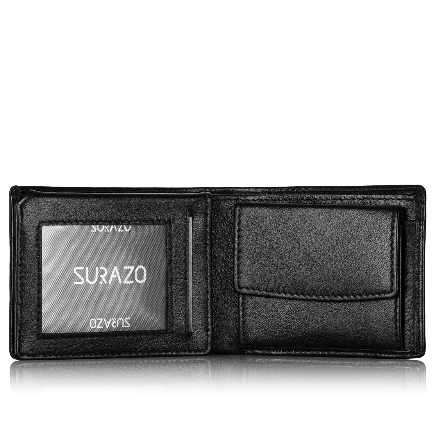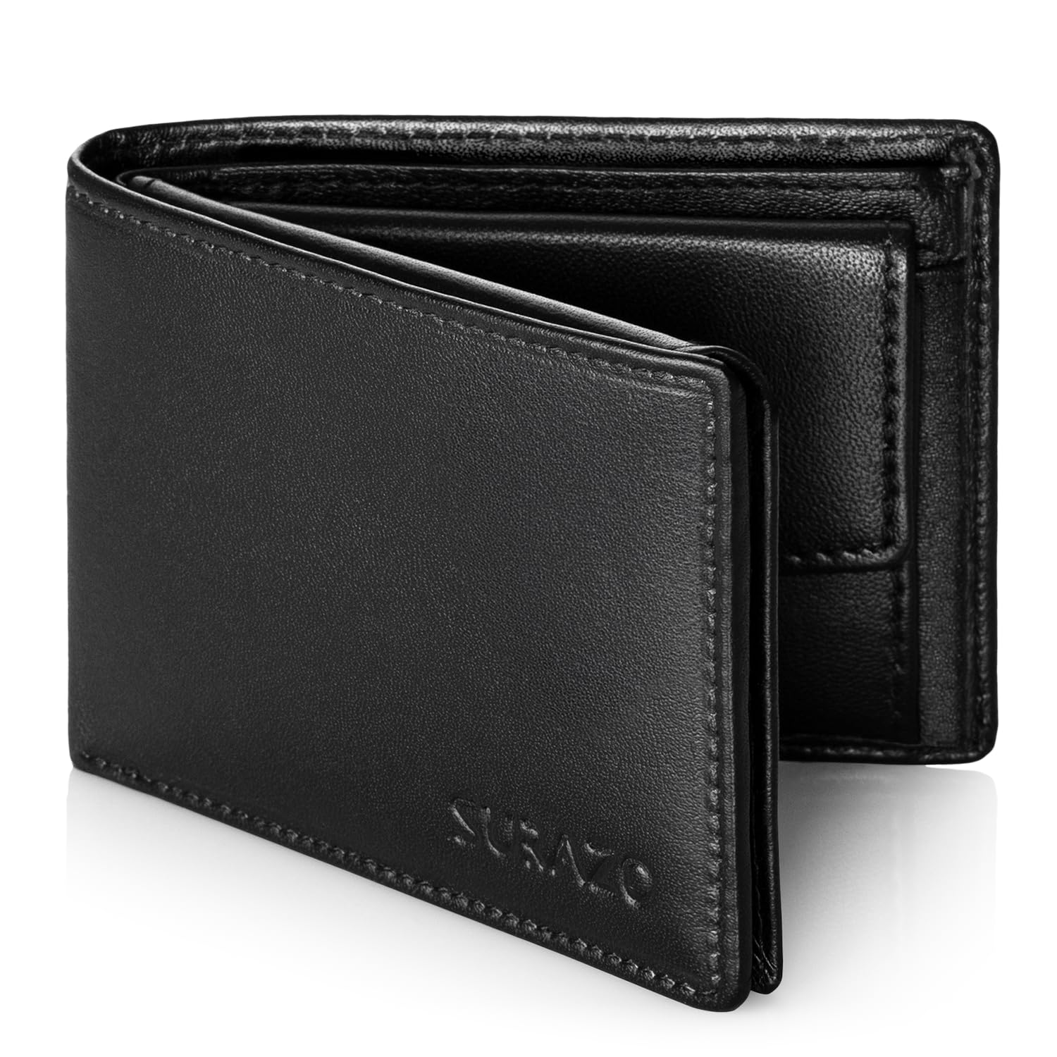 SURAZO Męski portfel z prawdziwej skóry – czarny – mały portfel z ochroną RFID i kieszenią na monety – wysokiej jakości prezent dla mężczyzn czarny 11cm x 8cm x 2.5cm