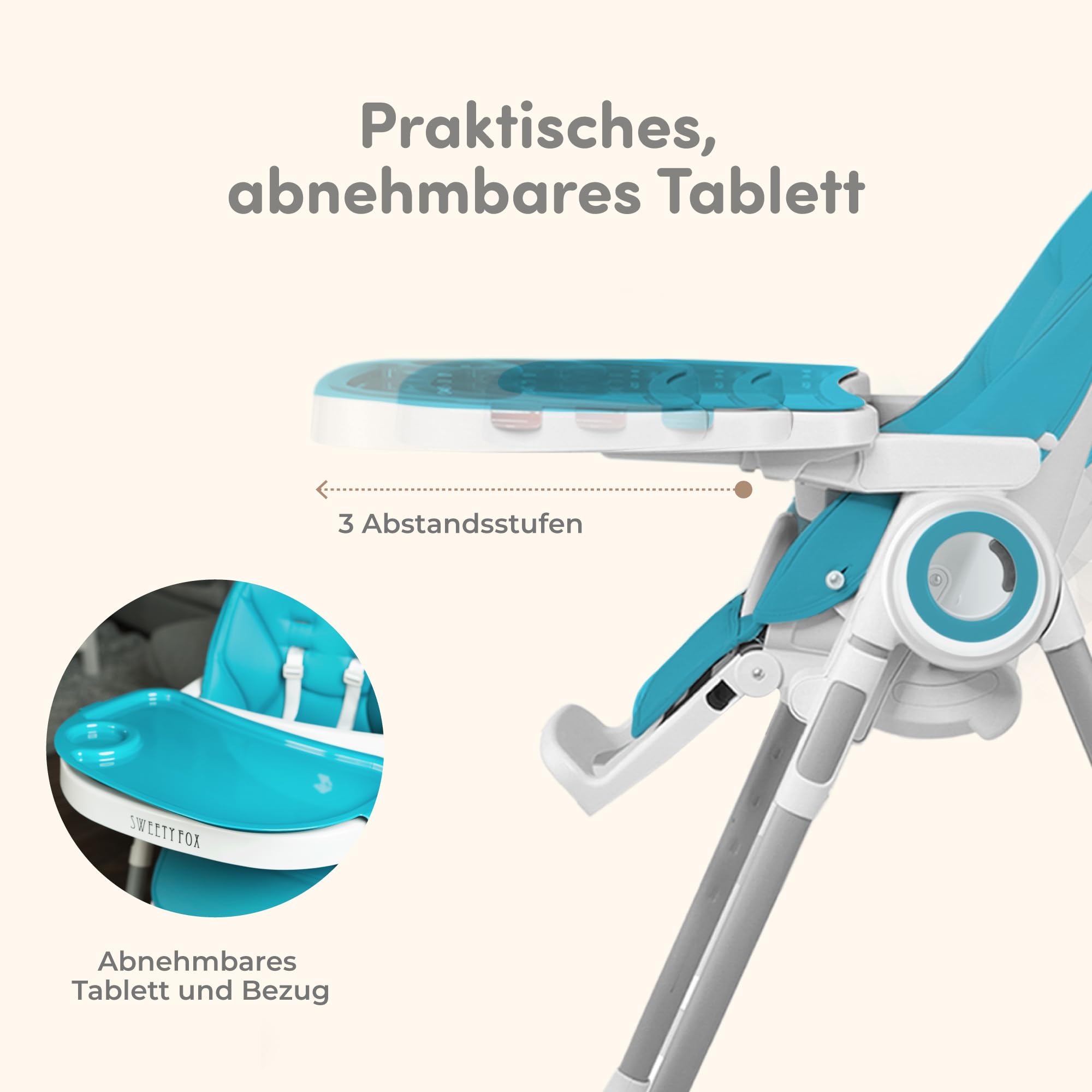 ✅ PREMIUM BABY CHILDREN’S: PREMIUM BABY CHILDREN’S CHAIR, ADJUSTABLE AND ADJUSTABLE – rosnące wraz z dzieckiem do lat malucha, wysokie krzesełko Sweety Fox baby jest bardzo łatwe w regulacji dzięki 5 pozycjom regulowanego oparcia, 3 pozycjom podnóżka i 7 różnym wysokościom siedziska: Twoje dziecko może jeść w komfortowych war