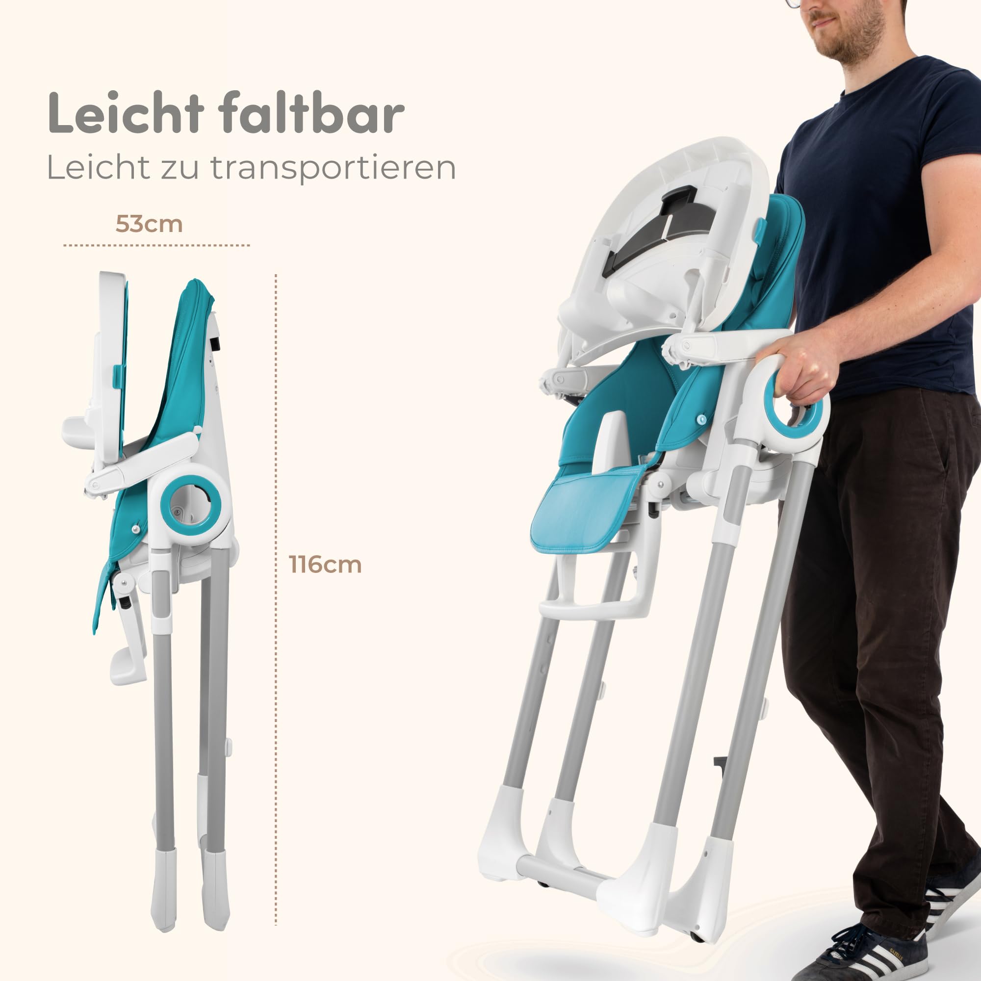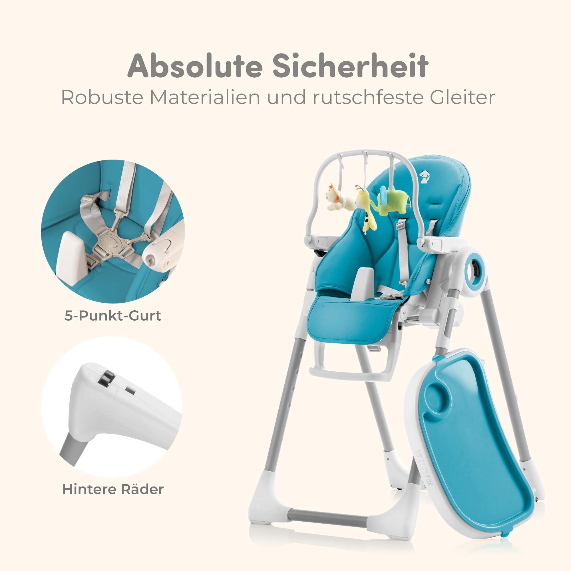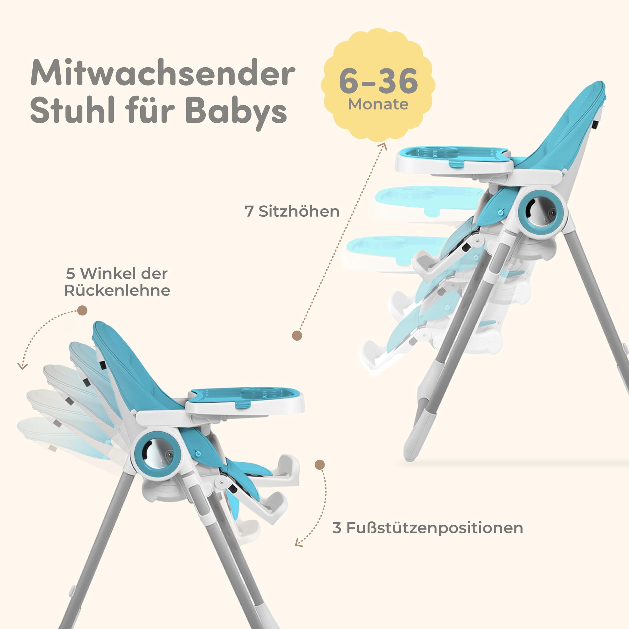 Regulowane, składane, wysokie krzesełko dla dziecka z zabawką – Wysokie krzesełka dla dzieci z 7 różnymi wysokościami, Regulowane siedzisko z 5 różnymi pozycjami – Wysokie krzesełka, Zdejmowana taca,