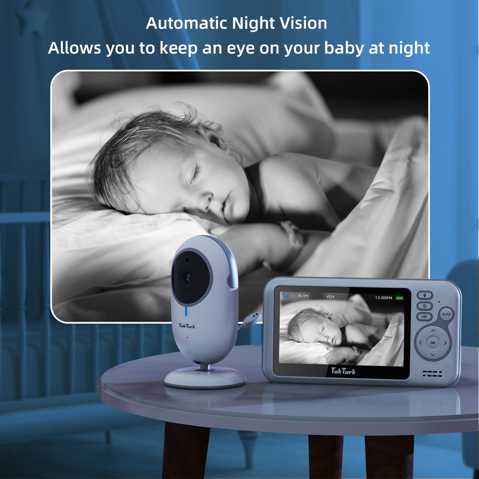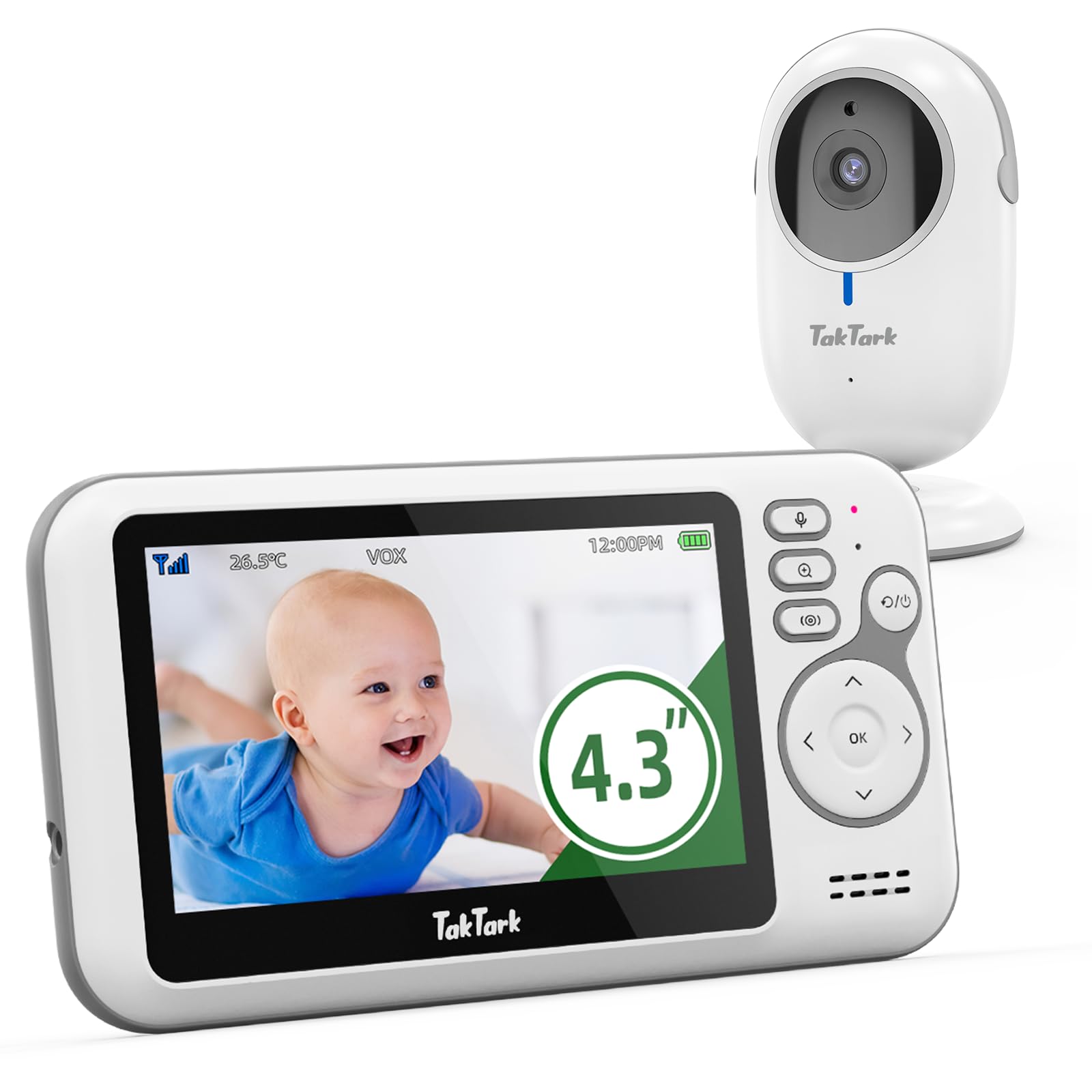 TakTark Elektroniczna niania z kamerą 43″ to innowacyjne urządzenie, które zapewnia kompleksową opiekę nad dzieckiem. Ta zaawansowana elektroniczna niania została zaprojektowana z myślą o zapewnieniu rodzicom spokoju i bezpieczeństwa, umożliwiając im monitorowanie swojego maluszka w czasie rzeczywistym.