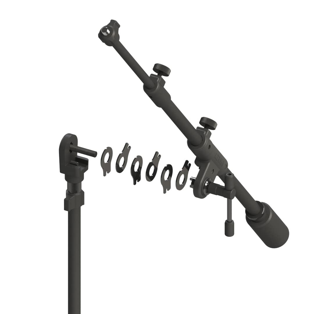 • Vice Grip Boom Tilter • Iron-Core Telescoping Boom Arm • Die-Cast Locking Thumb wpust • Okrągłe, zajmujące niewiele miejsca cokół • Regulacja wysokości 990-1700 mm