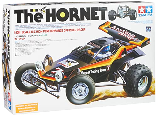 TAMIYA 58336-1:10 RC The Hornet 2004 2WD Buggy LWA to limitowana wersja legendarnego buggy The Hornet z 1984 roku. Ten model nie tylko jest doskonały dla kolekcjonerów TAMIYA, ale także dla wszystkich fanów samochodów terenowych. Zestaw zawiera model do samodzielnego złożenia, szczegółową instrukcję montażu, elektroniczny regulator prędkości, silnik elektryczny 540 oraz karoserię wykonaną z poliwęglanu.