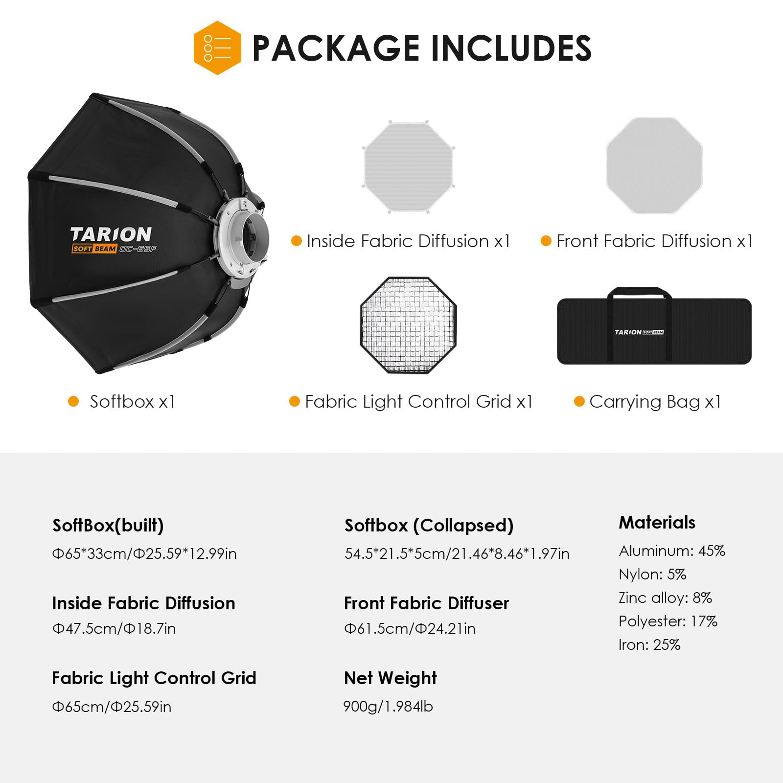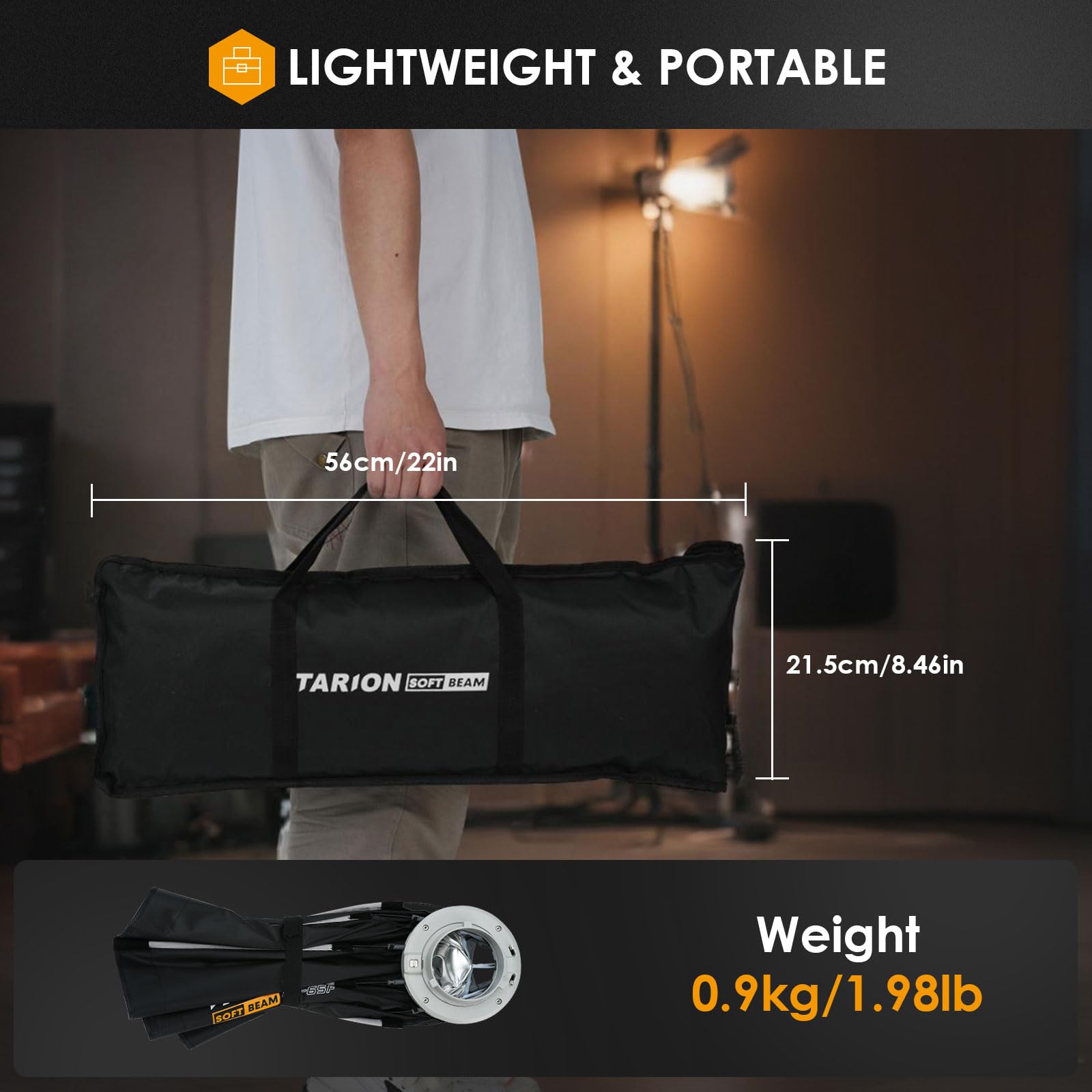 TARION Softbox do fotografii z uchwytem Bowens: 65 cm składane Quick Release Softbox z brokatem ośmiokątne miękkie pudełko do studia fotograficznego wideo lampa błyskowa SOFTBEAM (OC-65F) to doskonałe narzędzie dla każdego pasjonata fotografii i filmowania.