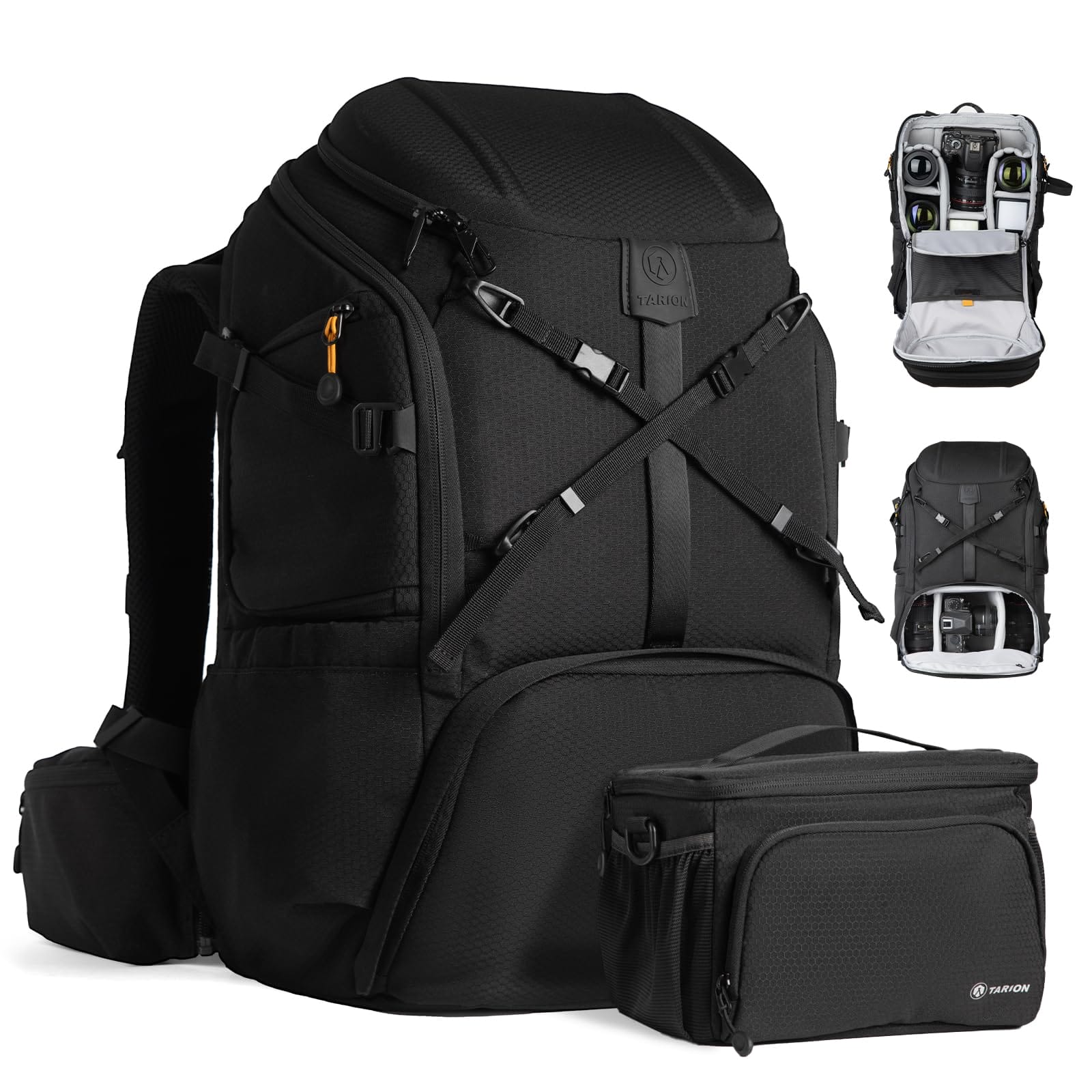 Pakiet zawiera: TARION Kamerarucksack Wandern Fotorucksack Groß Kamerarucksäcke Wasserfester Kamera Rucksack mit Laptopfach Wasserdicht Regenhülle für Drohnen SLR DSLR Spiegelrelex Kameras Objektive.