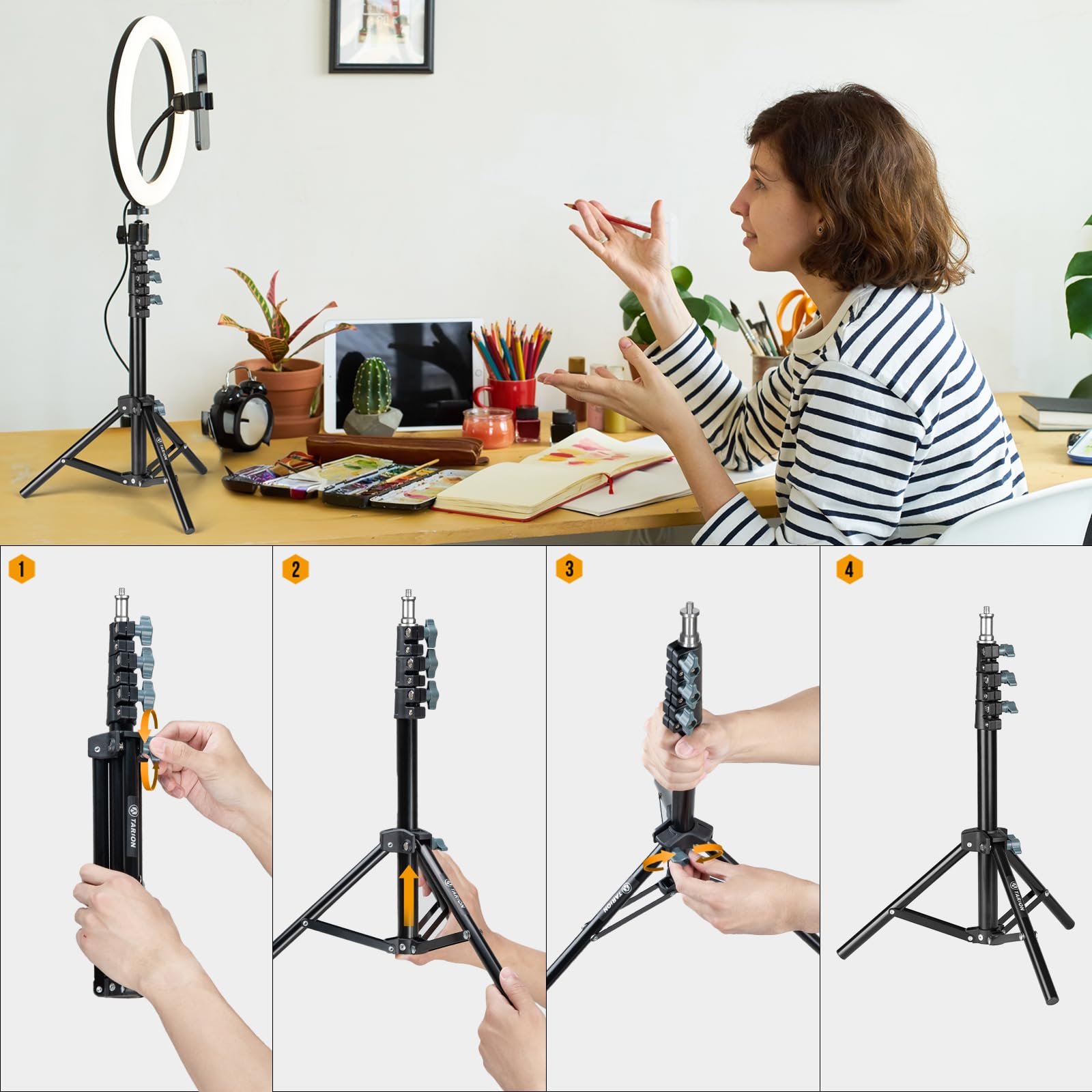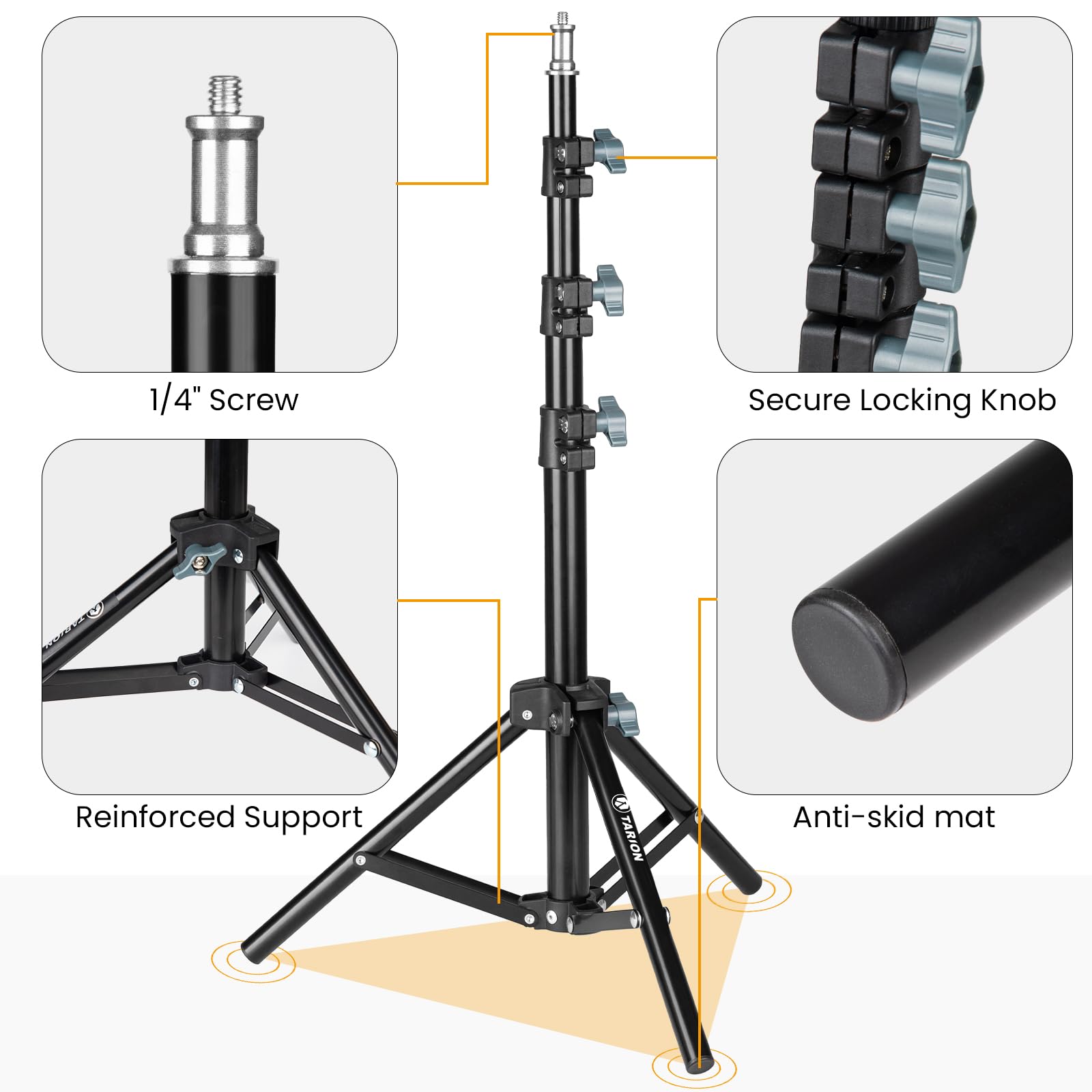 TARION Statyw oświetleniowy do studia kamer 130 cm to niezastąpione narzędzie dla każdego pasjonata fotografii i filmowania. Ten przenośny statyw oświetleniowy mini statyw fotograficzny jest nie tylko lekki i składany, ale także niezwykle kompaktowy, co sprawia, że idealnie nadaje się do nagrywania wideo w dowolnym miejscu.