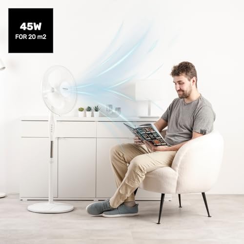Jednym z kluczowych atutów tego wentylatora jest funkcja oscylacji, która pozwala na równomierne rozprowadzenie chłodnego powietrza w całym pomieszczeniu, eliminując strefy z nadmiarem ciepła. Ręczne nachylenie głowicy wentylatora umożliwia skierowanie strumienia powietrza dokładnie tam, gdzie jest to potrzebne, co czyni go niezwykle wszechstronnym urządzeniem.